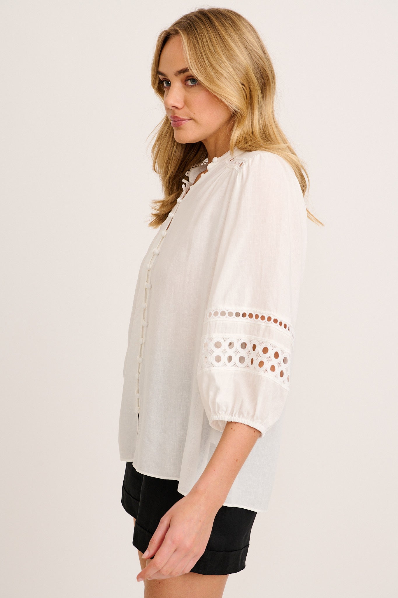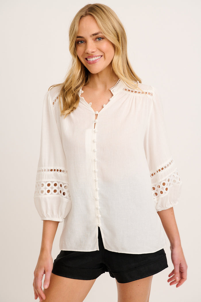 Elevate your wardrobe with our versatile Cascades Top, a timeless piece that flatters all body types. Pair it with sleek gold hoop earrings, a delicate layered bracelet, and nude block heels for a polished look.