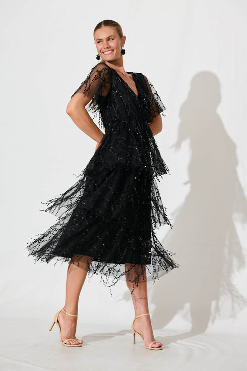 Make a sparkly statement in our Catalina Sequin Midi Dress! This show stopping number will ensure all eyes are on you at your next special event! Style it with heels & a nude clutch for a refined, feminine look.