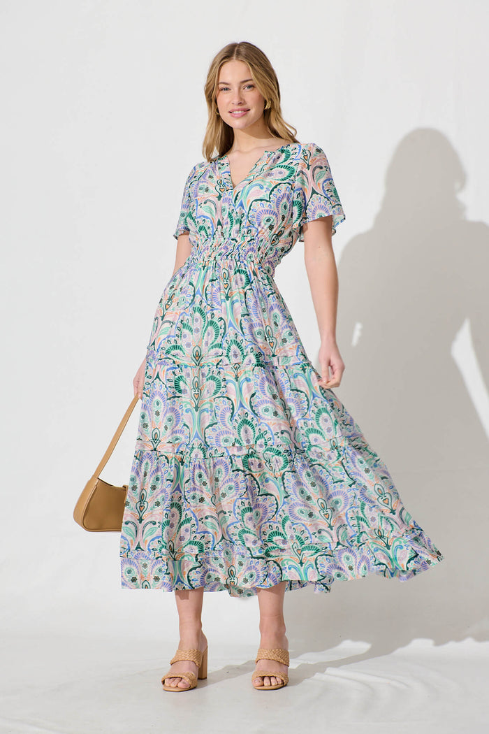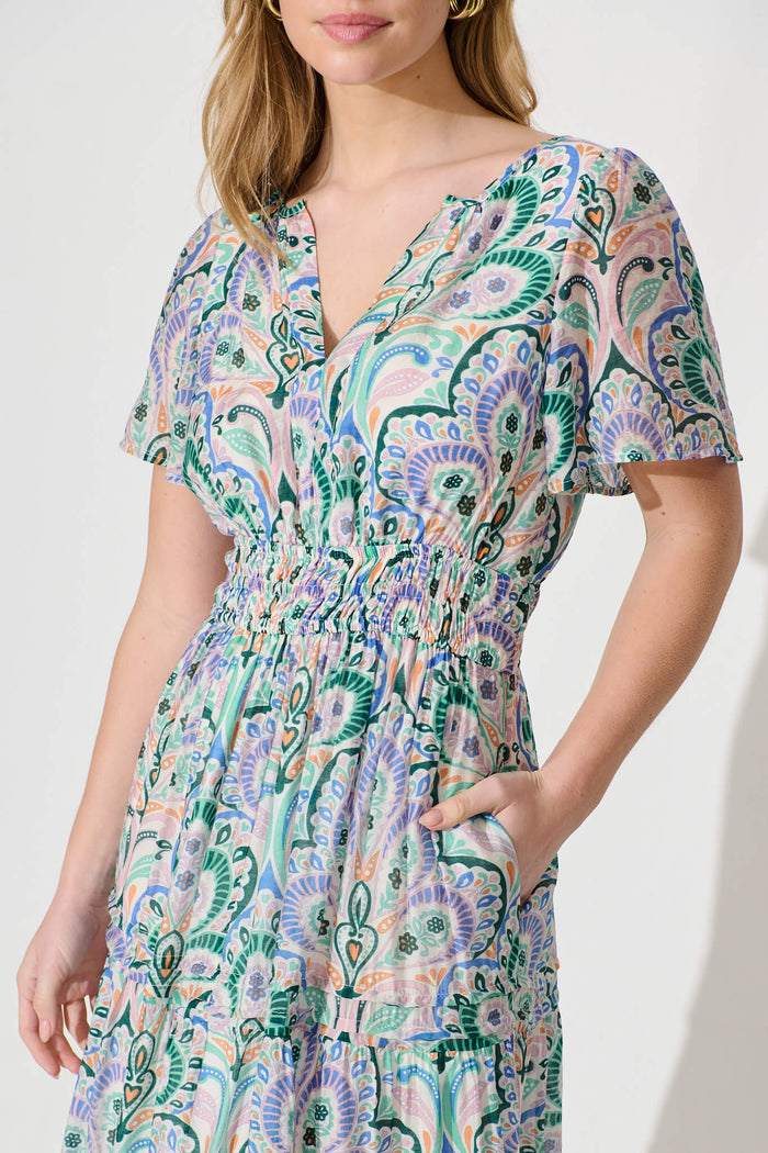 Catania Maxi Dress In Jade And Blue Paisley Print