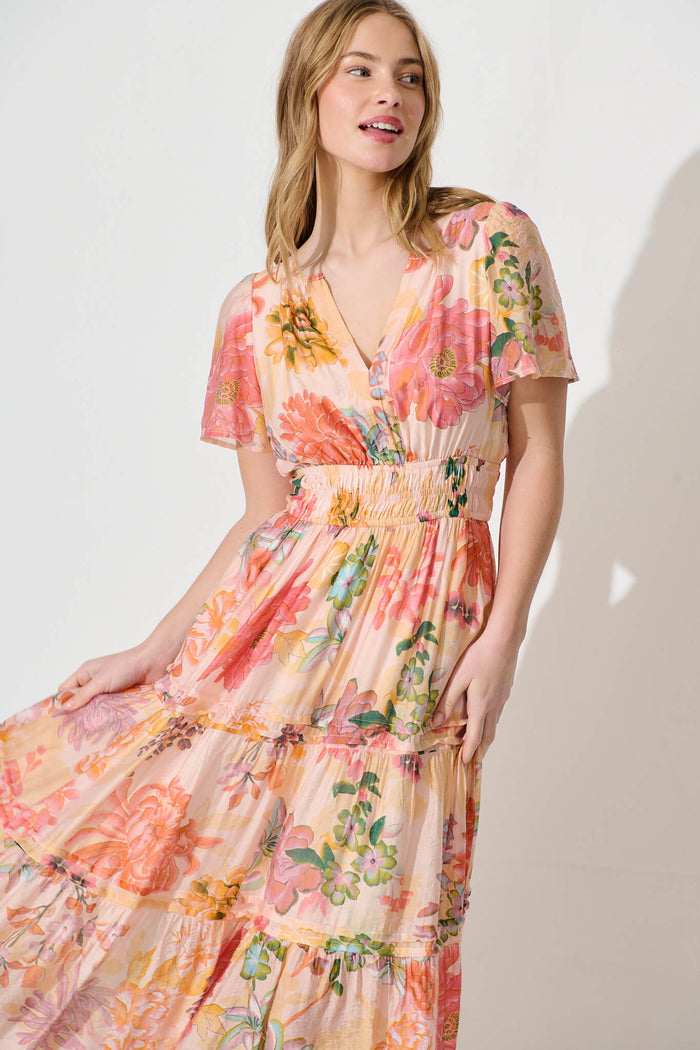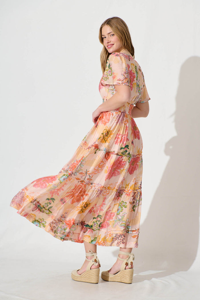 Catania Maxi Dress In Tangerine Floral Print