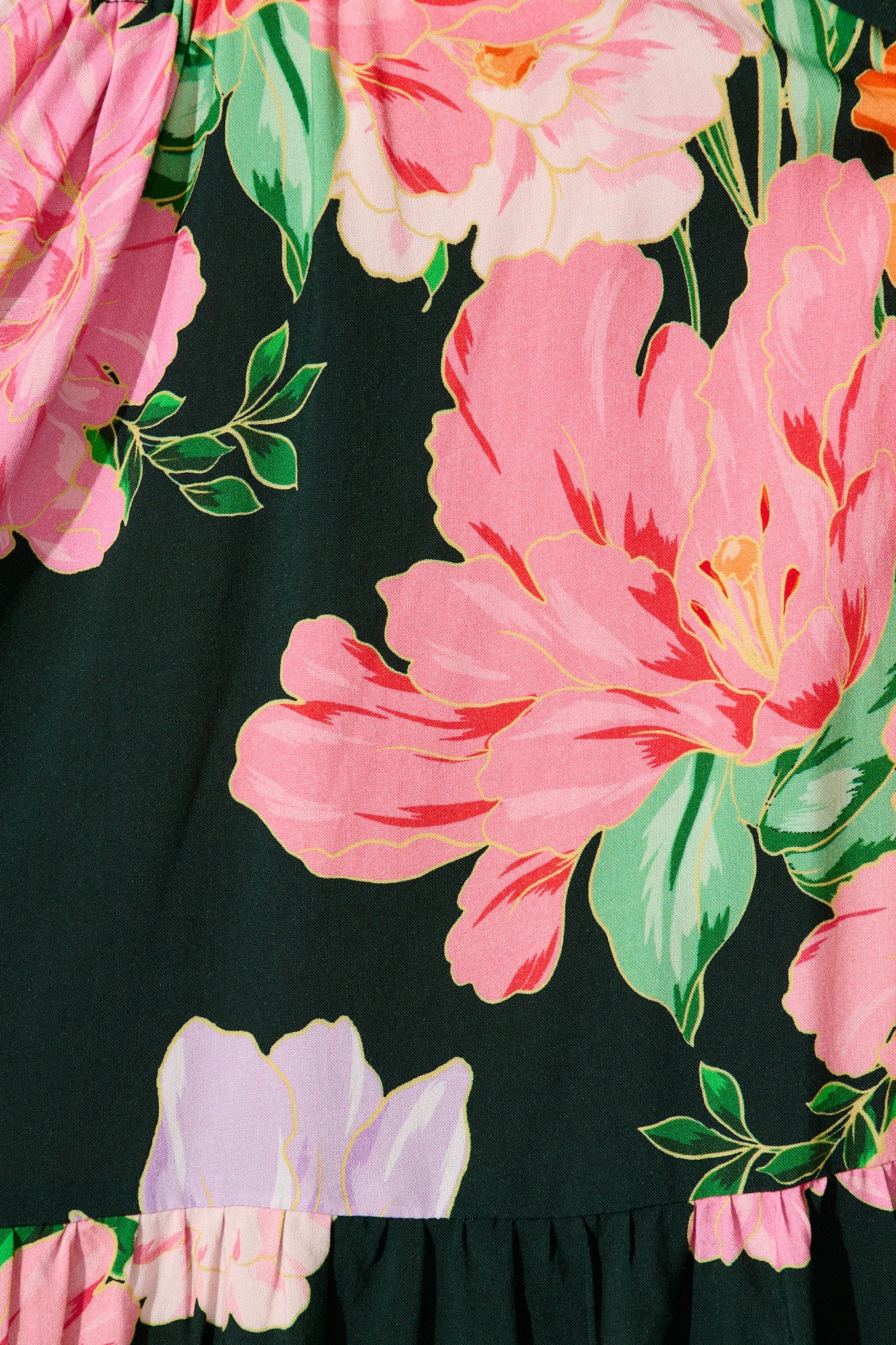 The Celeste Petal Dress in Green with Multi Floral is fresh, floral and just the right amount of playful. Ideal for sunny weekends or park dates, this A-line mini is all about relaxed charm with pretty details that elevate the look.