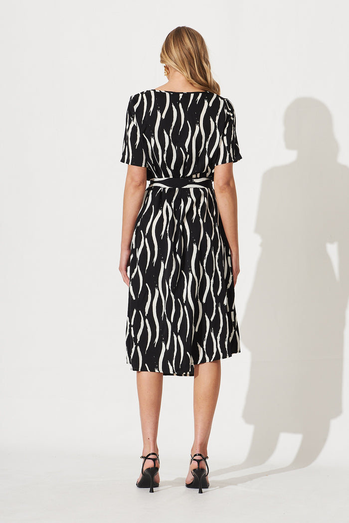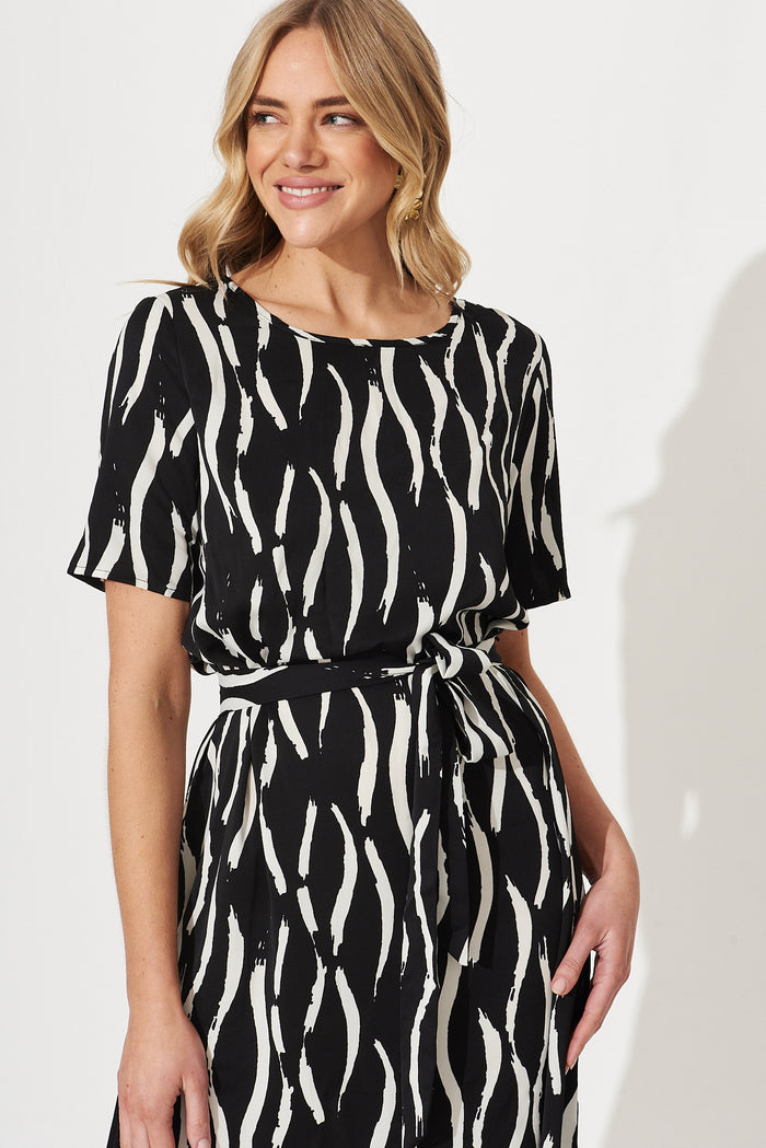Our Chambery Midi Dress is the perfect combination of comfort and style! This pull on style is easy to wear, while the separate waist tie gives you shape and definition. Keep your look classic with a pair of black mules and gold jewellery.