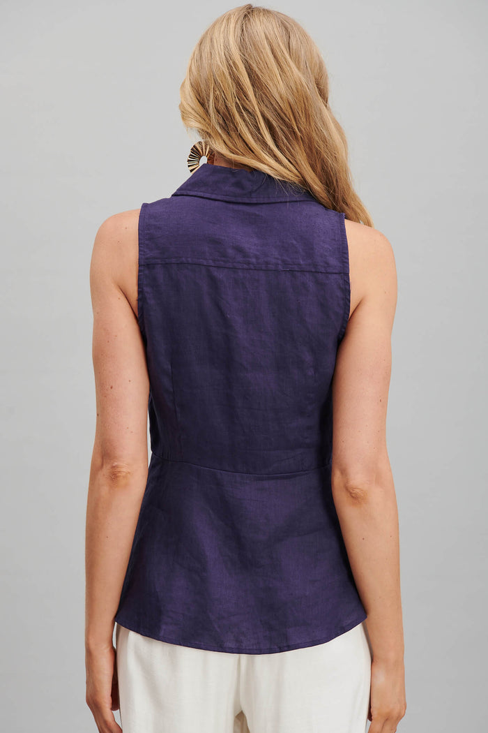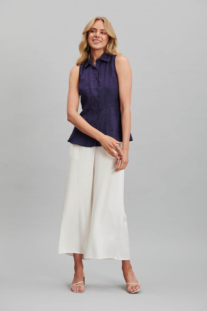 Charma Shirt In Navy Pure Linen