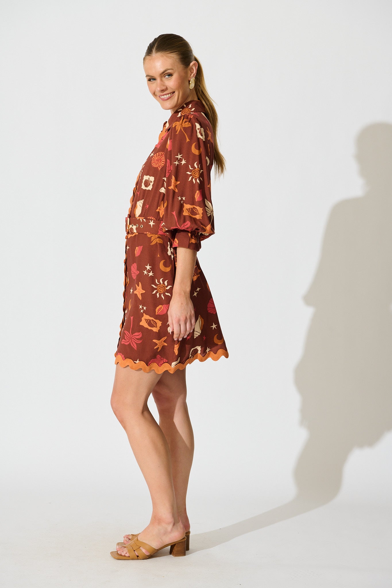 With its earthy tones and shirt-dress silhouette, the Charmain Dress in Multi Brown Summer Print is your go-to for relaxed refinement. Easy to wear and rich in detail, this mini makes everyday dressing feel special.
