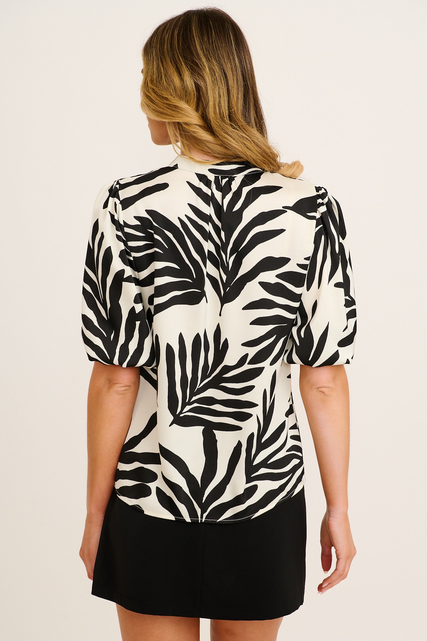 Bold, versatile and ultra-wearable — the Claya Top in Black with White Leaf Print is the kind of wardrobe piece you’ll reach for again and again. Designed to take you from desk to dinner with ease, it’s equal parts stylish and practical.