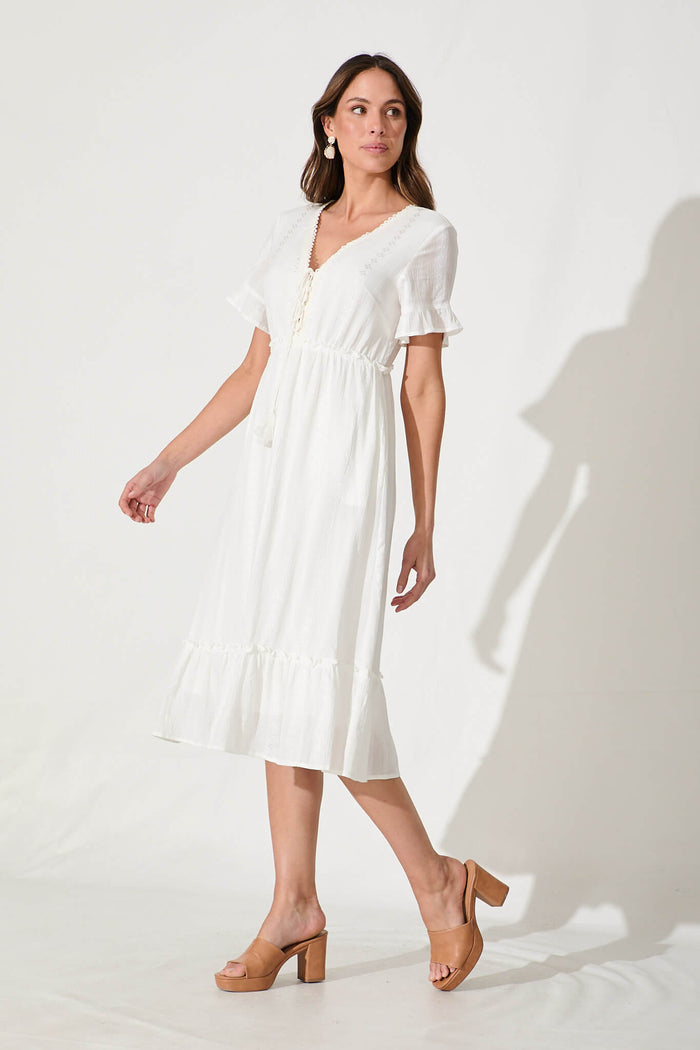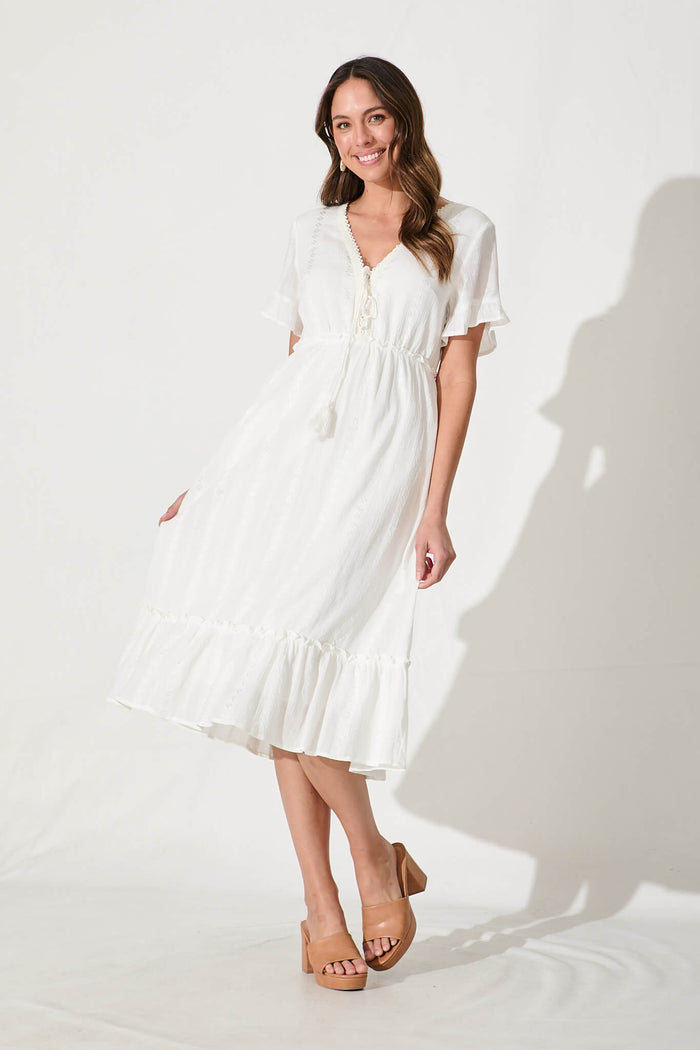 Step out in style this season in the gorgeous new Clea Midi Dress. It's midi length and short sleeve is perfect for your next day event. Wear it to a picnic or long lunch with the girls!