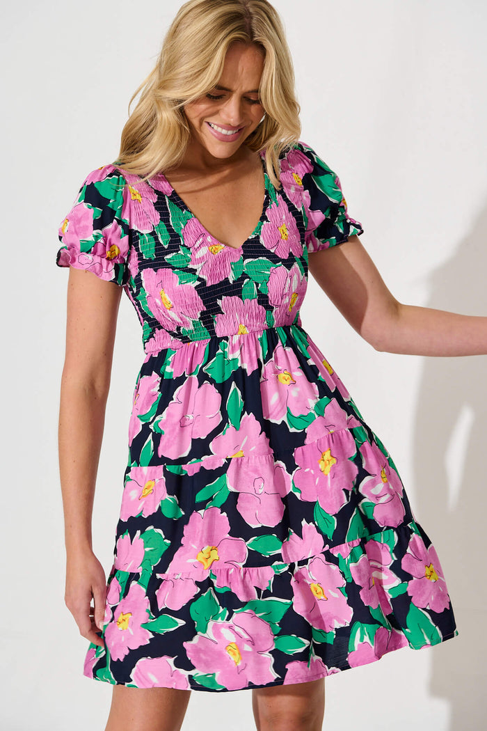 Our Clemente Dress is sure to turn heads and keep you looking great this spring and summer. Featuring a V-neckline and comfortable shirred bodice, you'll be able to wear it all day long! Dress it down with some sneakers or up with some strappy sandals for the ultimate versatile look!