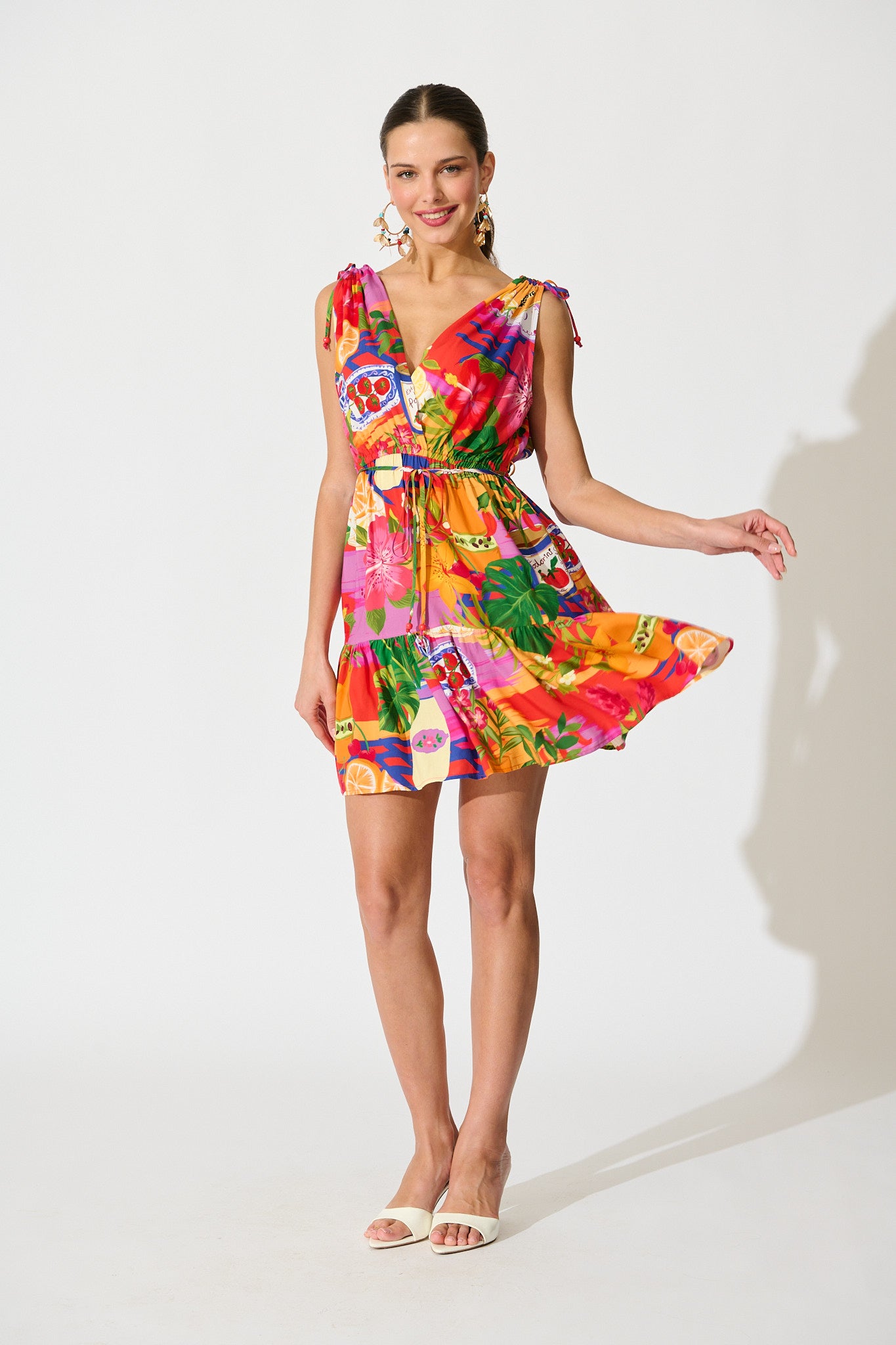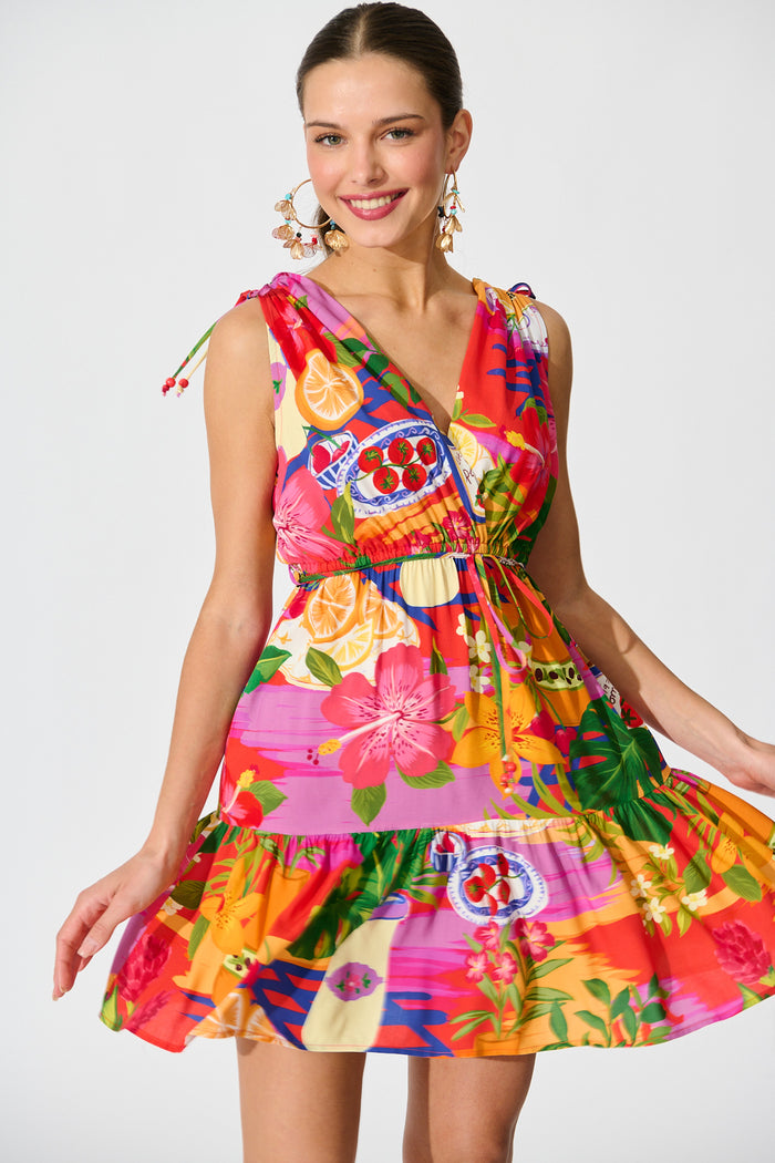 The Clio Mini Dress in Purple Multi Print is here to bring a little fun to your warm-weather wardrobe. With its bold print and playful silhouette, this sleeveless mini is perfect for balmy evenings, summer BBQs or spontaneous catch-ups with friends.