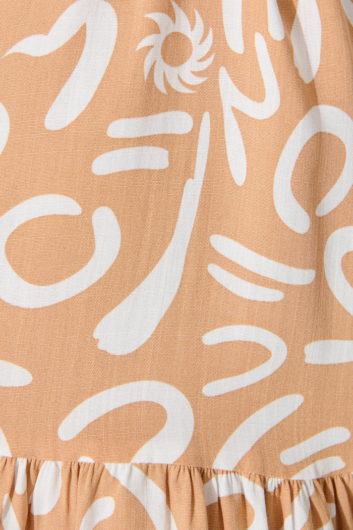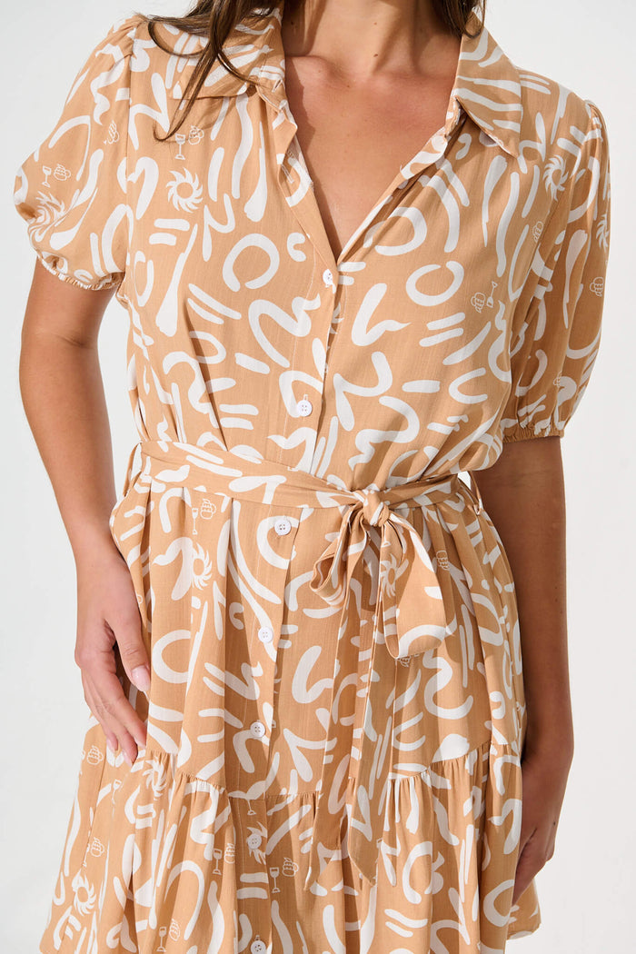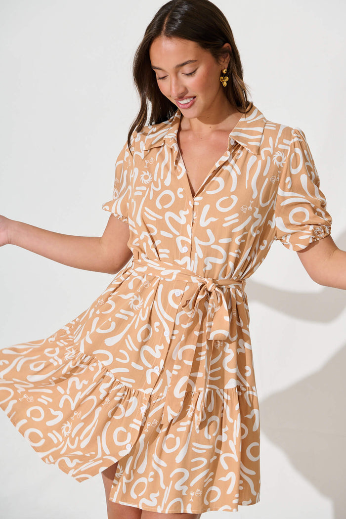 Clyde Shirt Dress in Beige and White Swirl Print