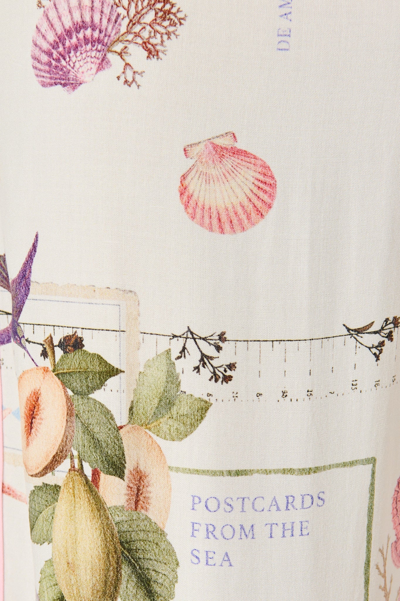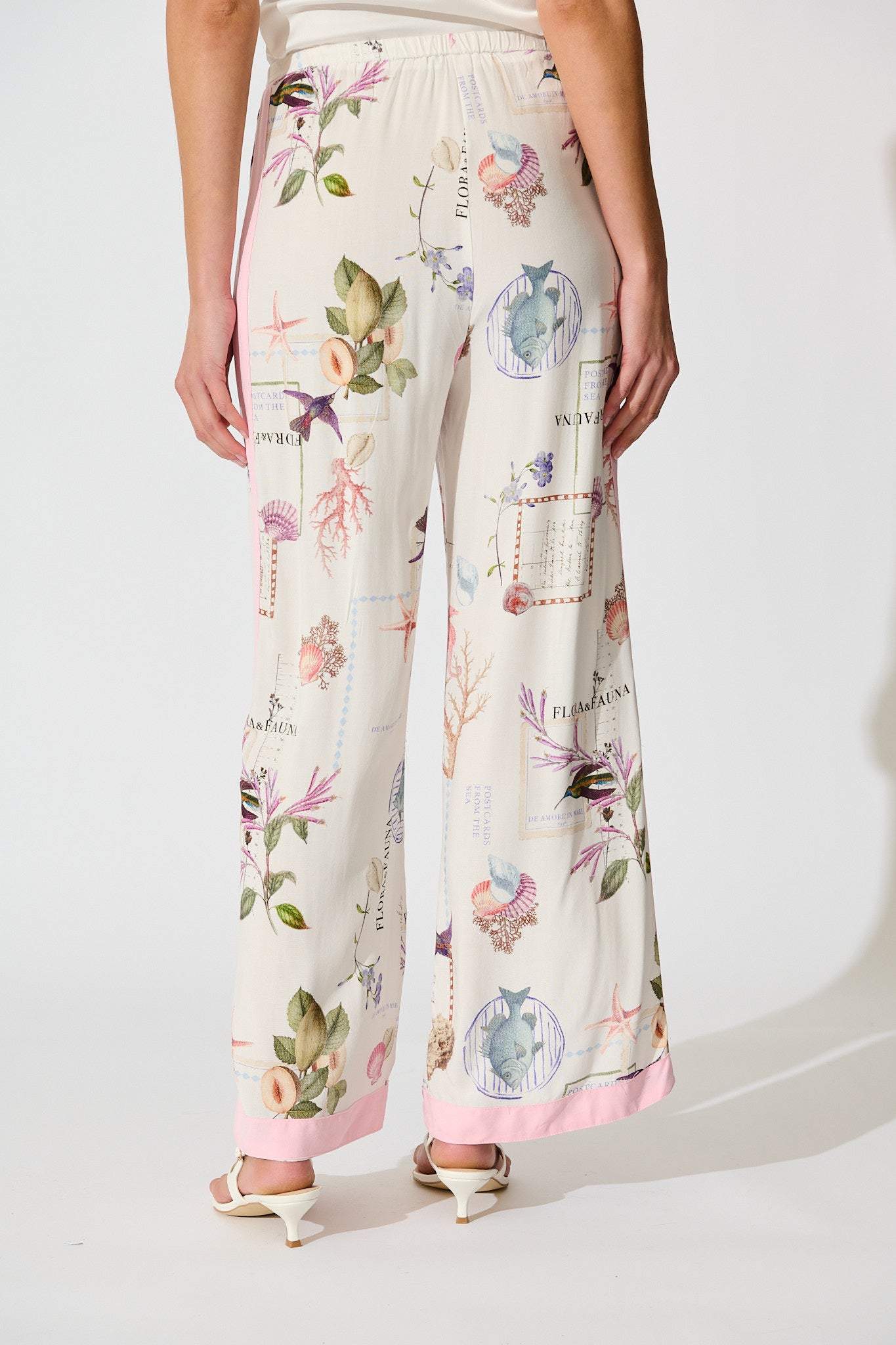 These pants feature a straight leg silhouette with an ankle-grazing length for a clean, effortless finish. The shell-inspired print gives them a unique, summery feel, and the contrast border panel at the hem adds just the right amount of detail. Unlined to keep them breezy and light, they pair perfectly with the matching cami or a simple tank for easy styling.