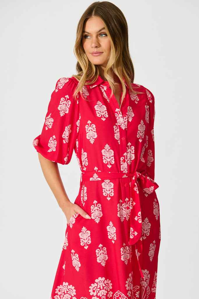 The Coco Maxi Shirt Dress in Pink Print marries airy elegance with effortless comfort. Soft puff sleeves and a vibrant print feel fresh and optimistic, ideal for casual brunches, resort dinners or stylish weekend wanderings.