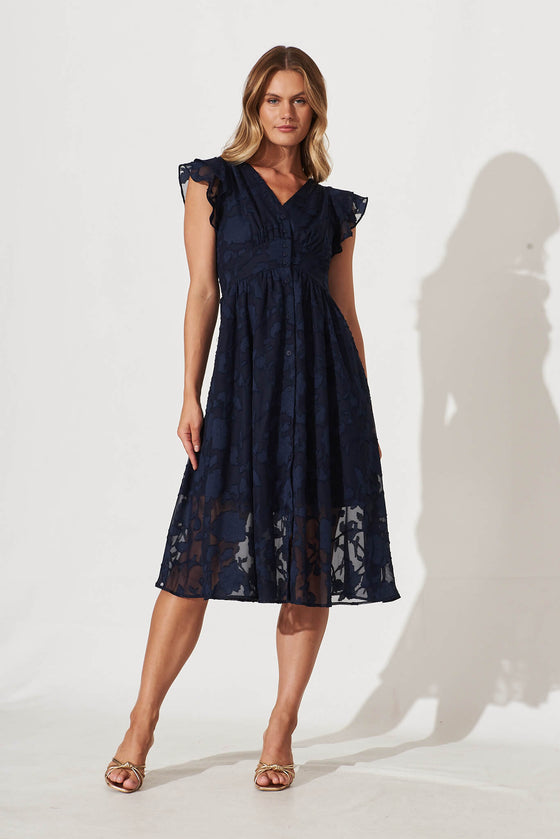 Constance Midi Dress In Navy Chiffon