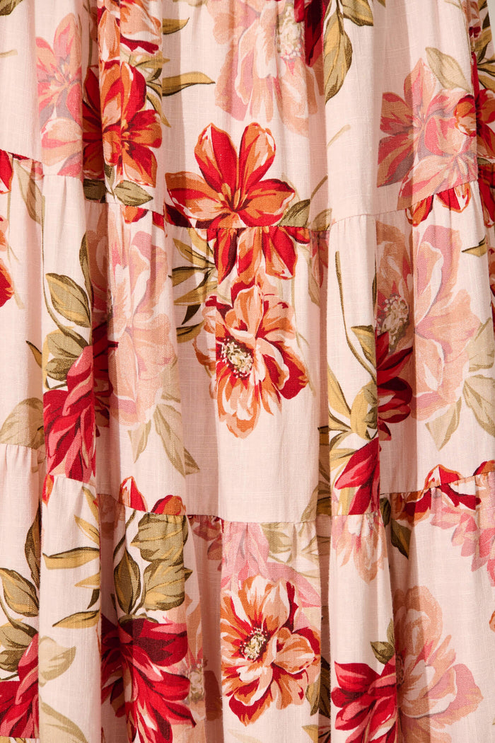 Costello Maxi Dress In Pink With Multi Floral Linen Blend