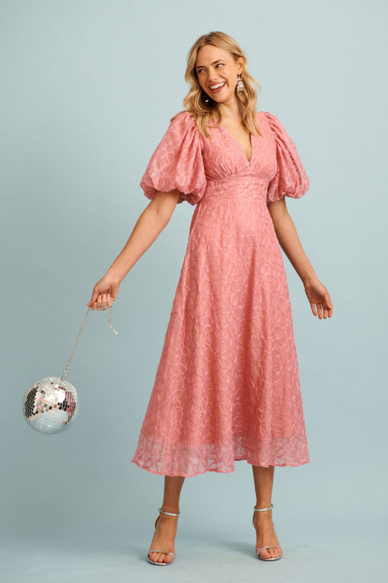 Countess Maxi Dress in Pink Embroidered Organza