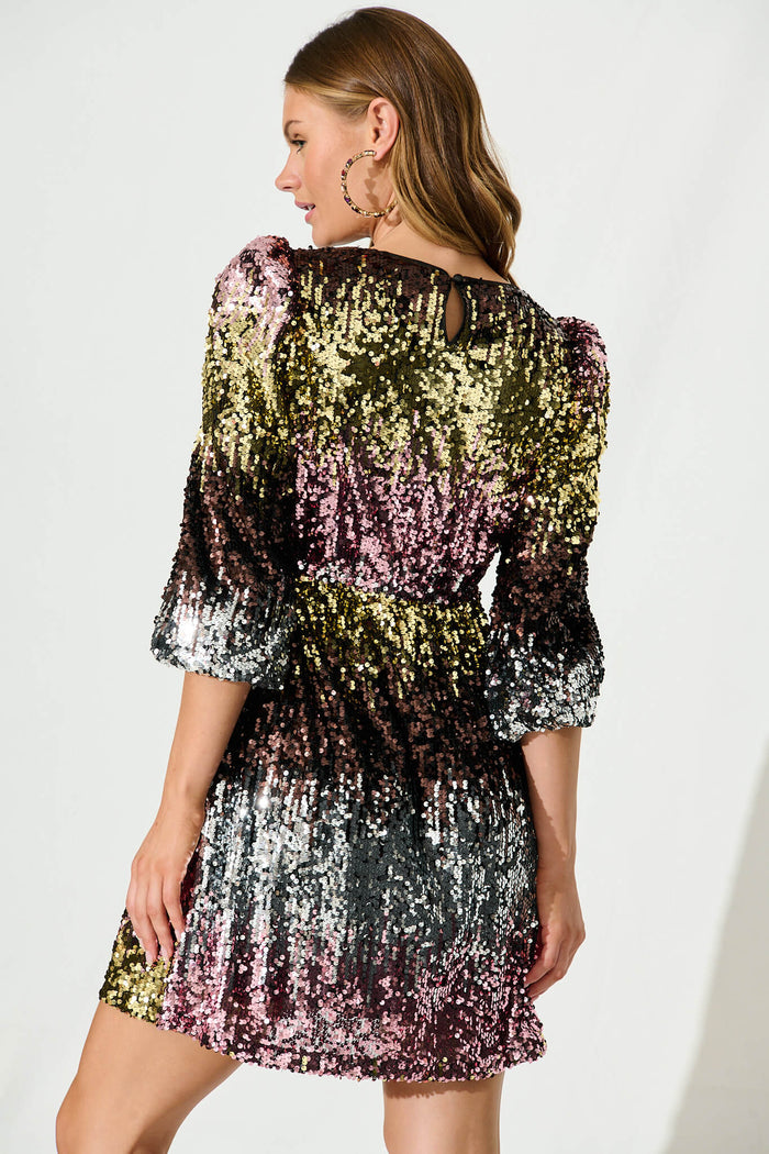 Crazy In Love Dress In Pink And Gold Ombre Sequin
