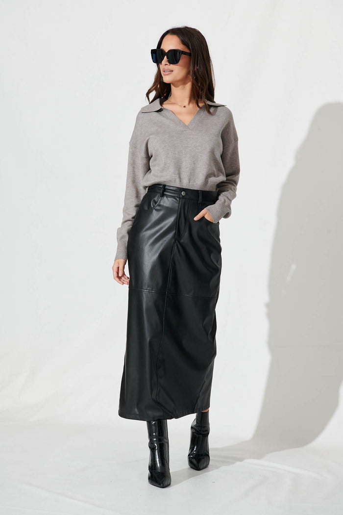 Timeless and comfy, our Cruz Knit is the missing piece to your winter wardrobe. Designed to be a layering essential, features include a statement collar, V-neckline and ribbed finishings. Team with your leatherette skirt, knee high boots and everyday tote for a trending look!