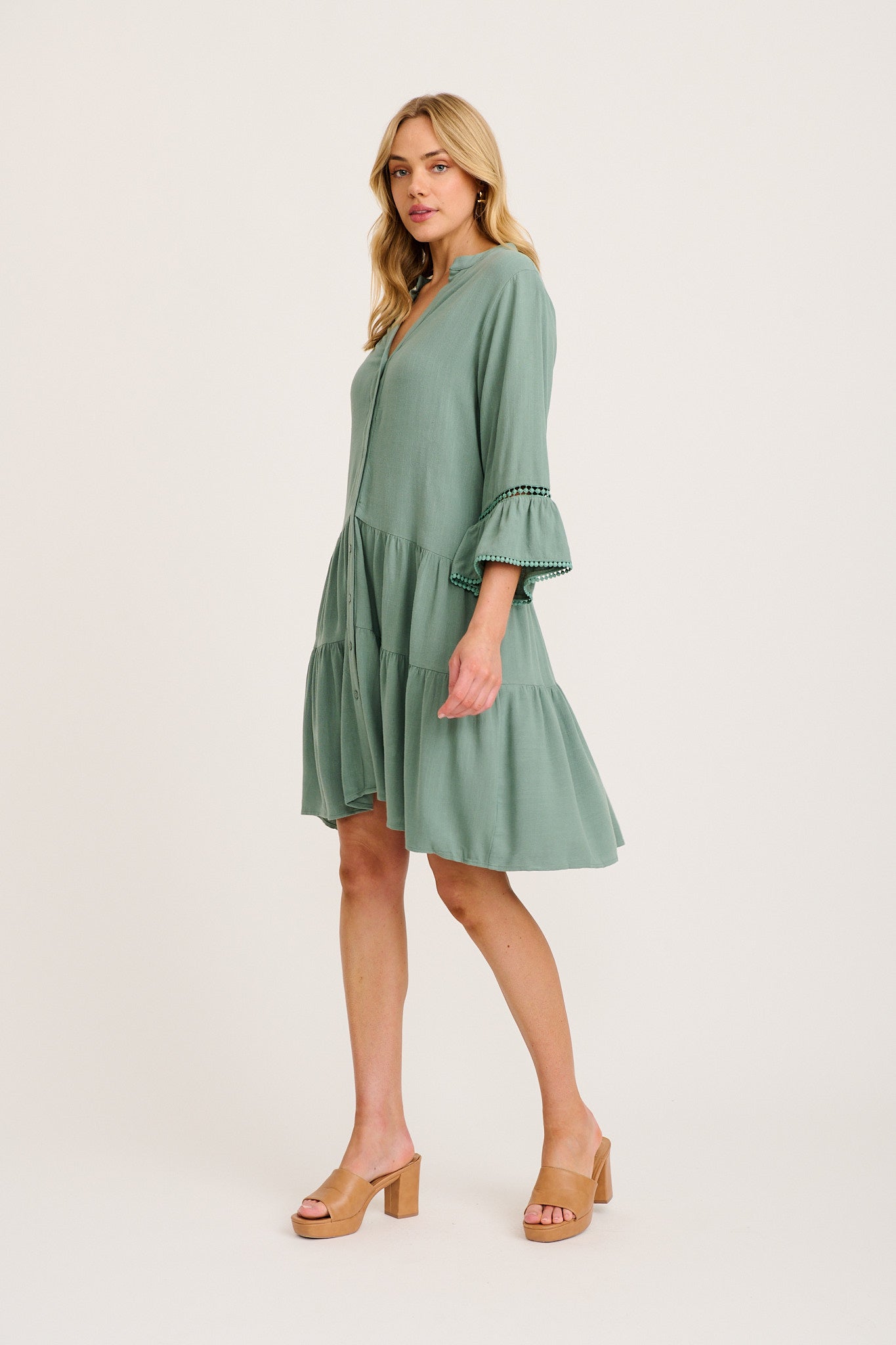 Sage sophistication — the Damela Smock Dress in soft linen brings calm elegance to your daily rotation. Lightweight and easy to wear, it feels both polished and relaxed.