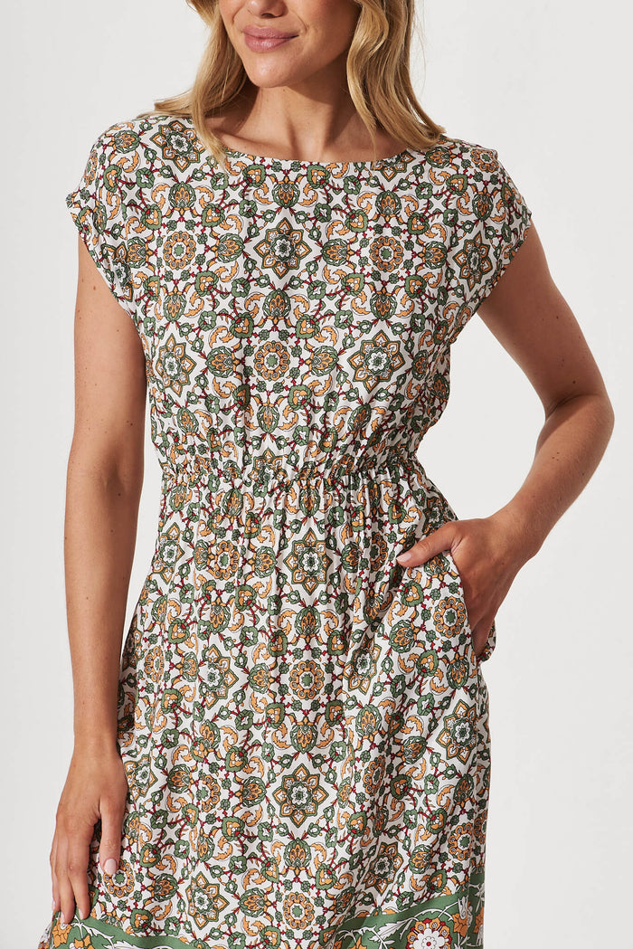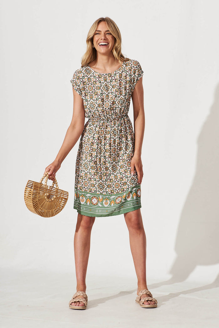 Darcy Dress In Khaki Border Print