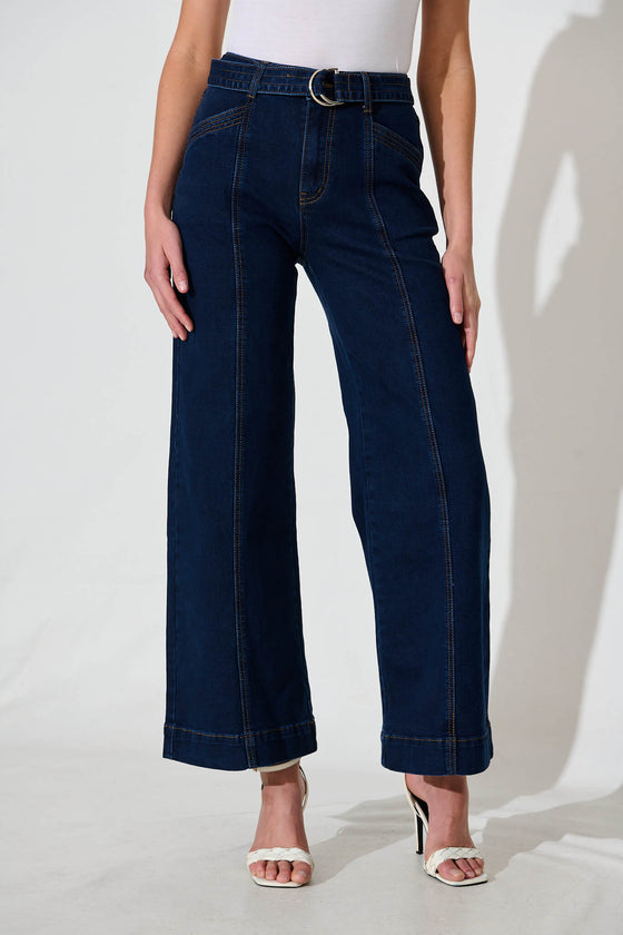 Daria High Rise Wide Leg Jean In Dark Blue Denim