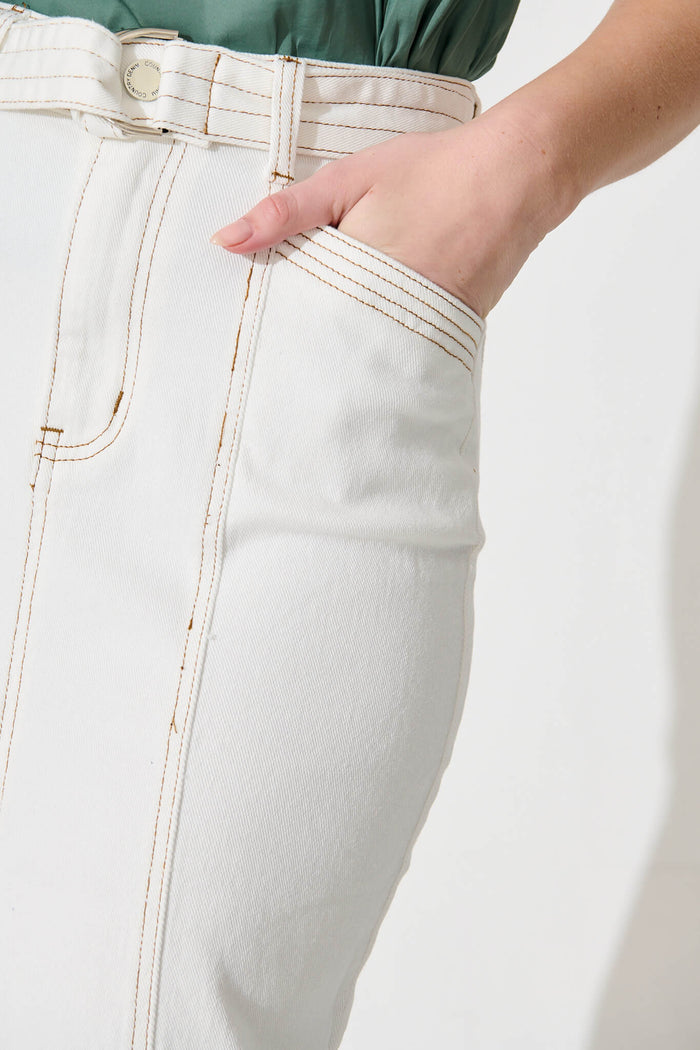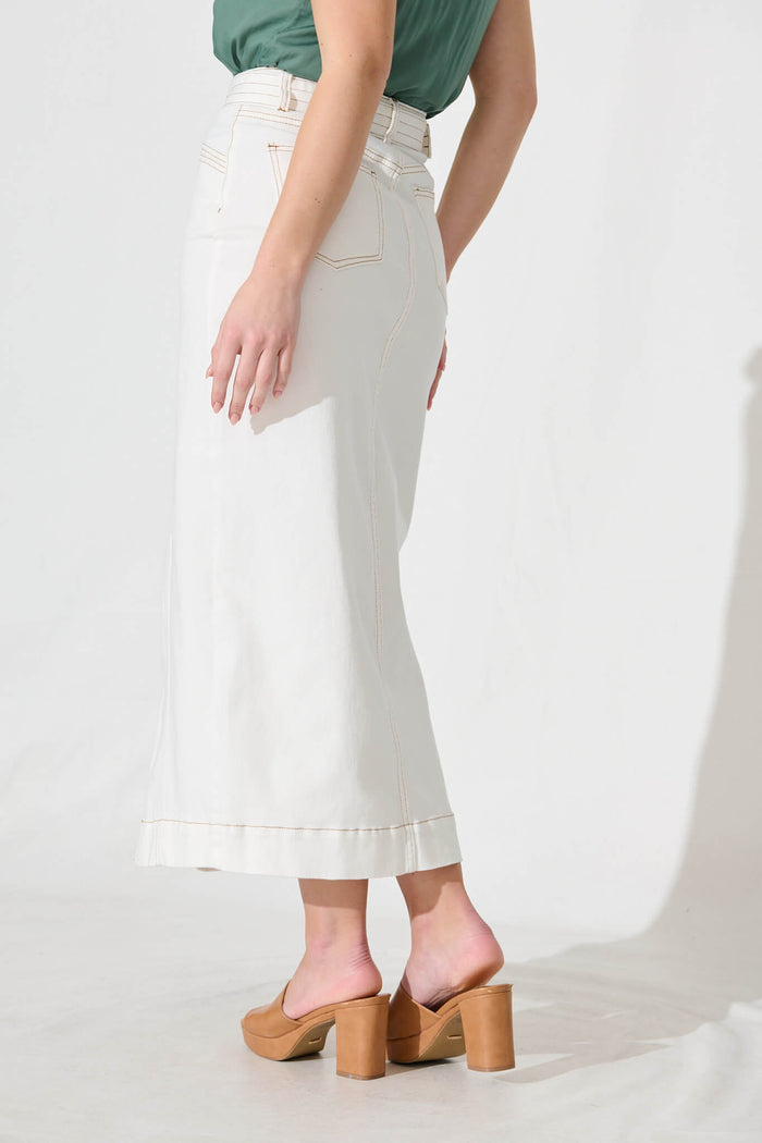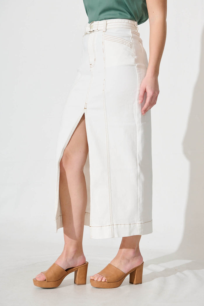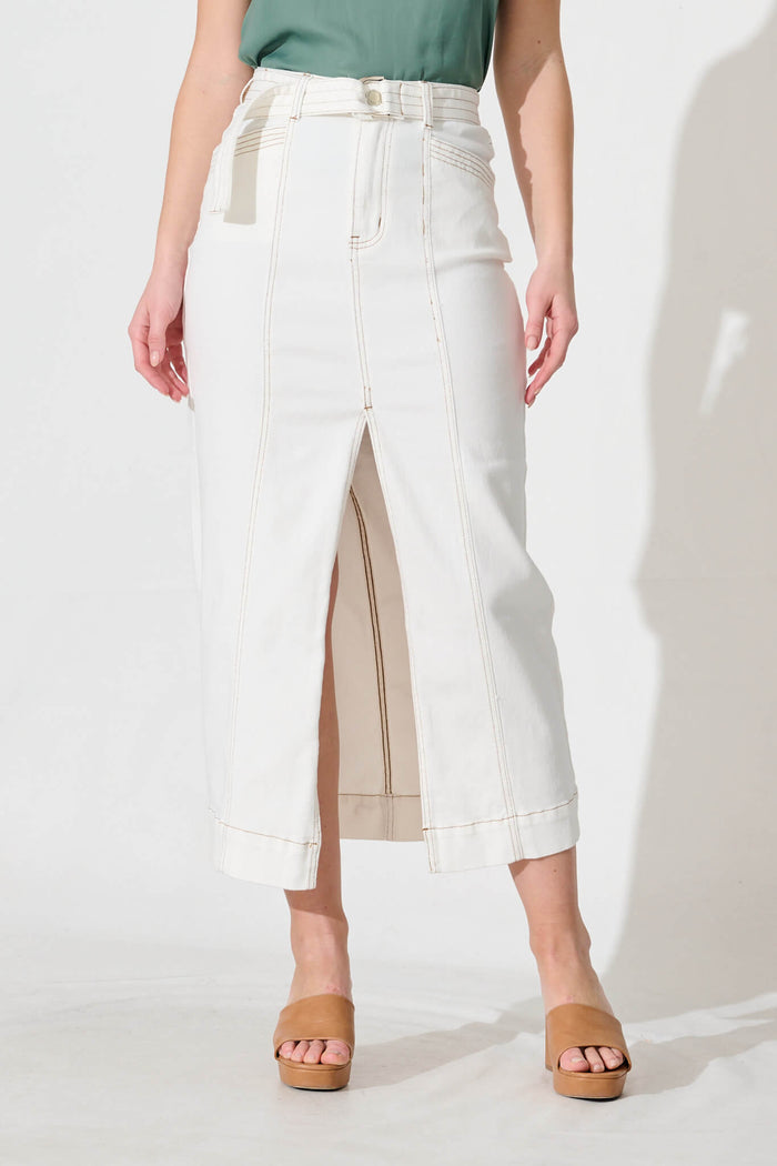 Denim for days, our Darianne Maxi Denim Skirt is a season must-have. Made from a semi-stretch durable denim, this skirt sports a front split, optional belt and twin side pockets. Team with your go-to wedges, basic tee and tote in hand for an elevated look.