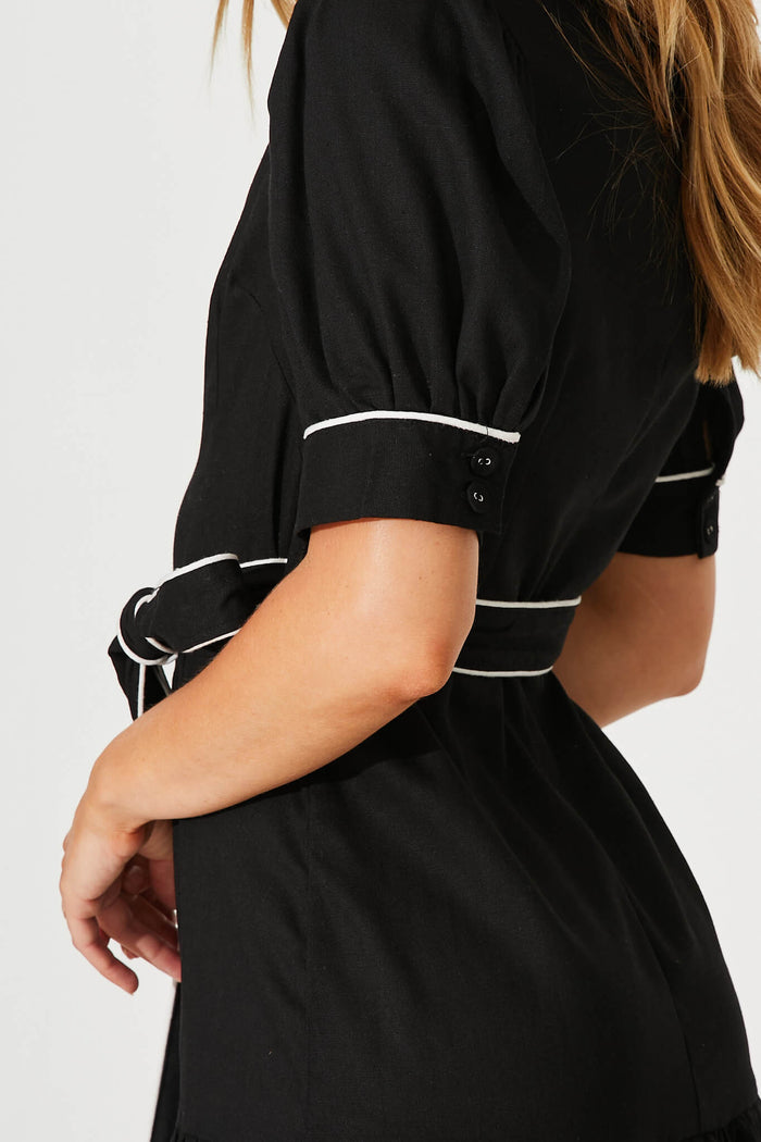 Darina Midi Shirt Dress In Black With White Linen Blend