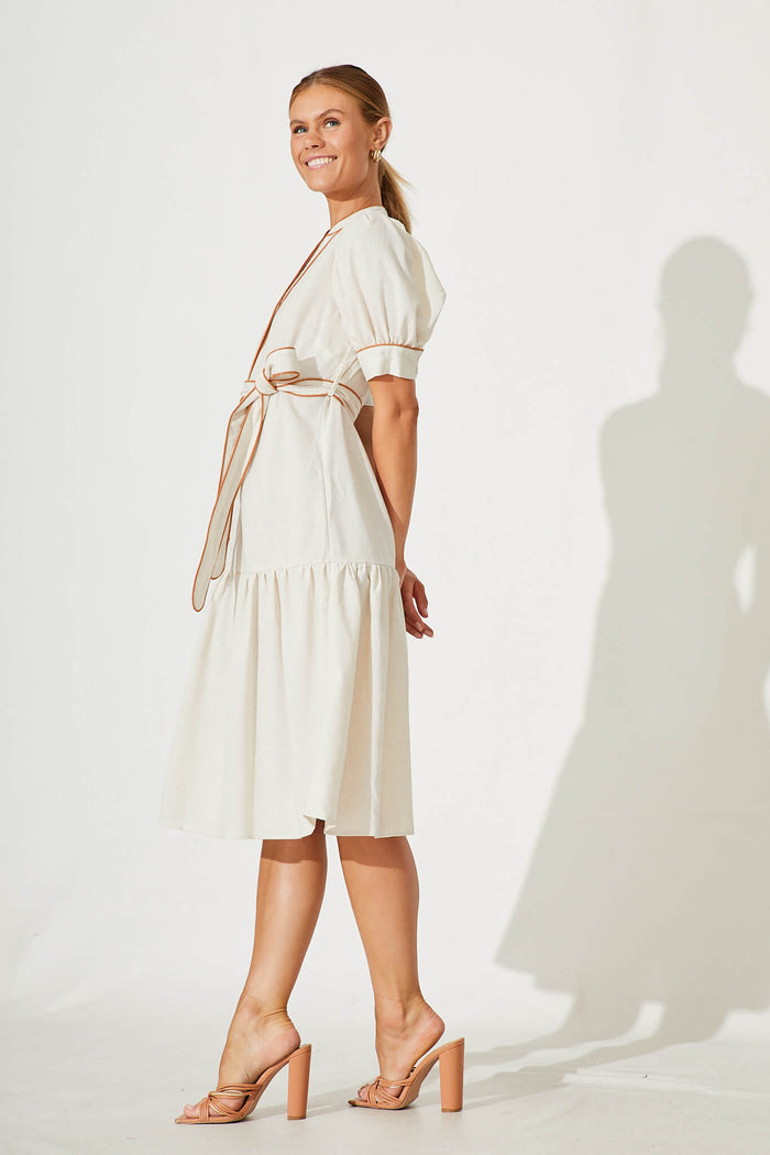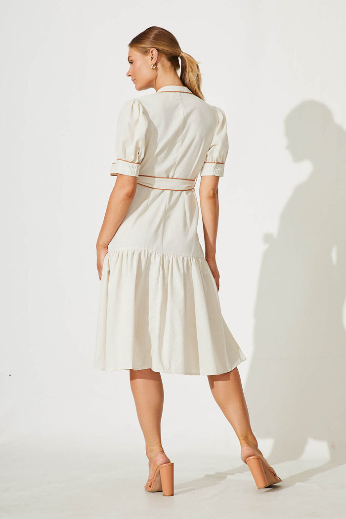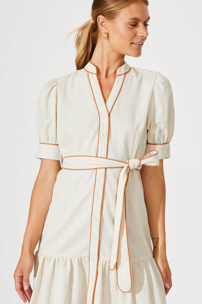 Darina Midi Shirt Dress In Oatmeal With Tan Linen Blend