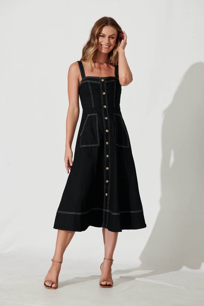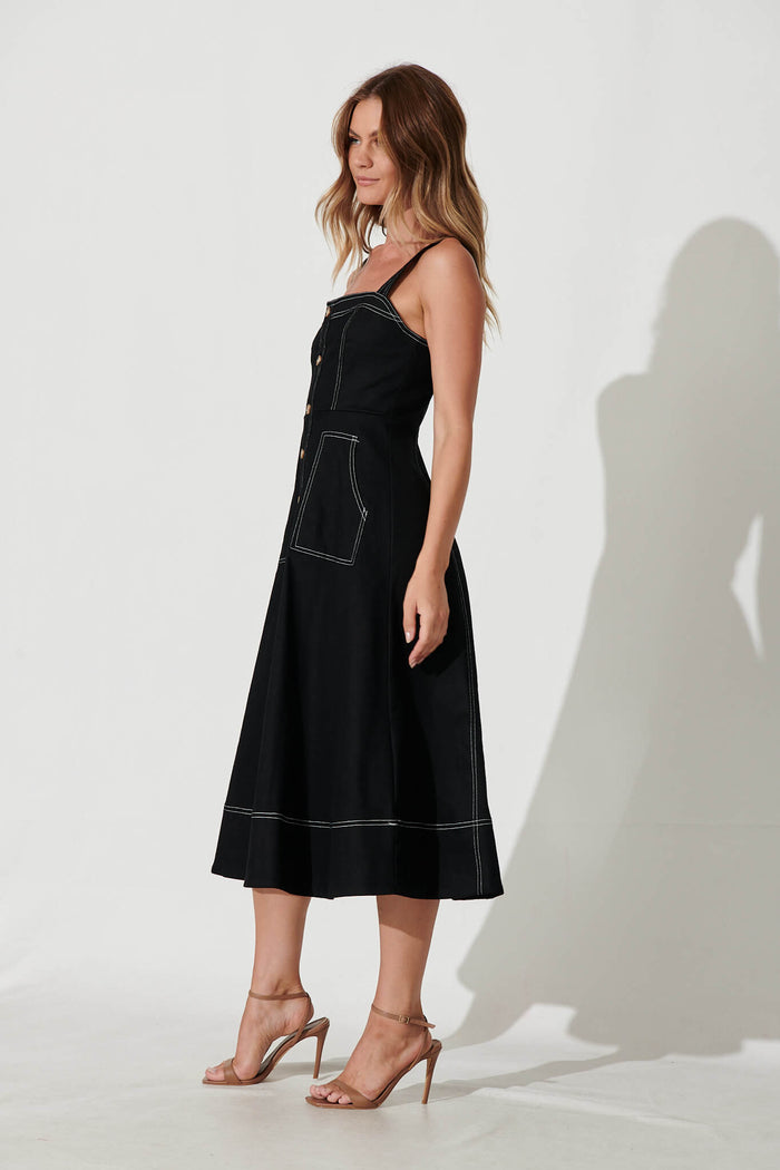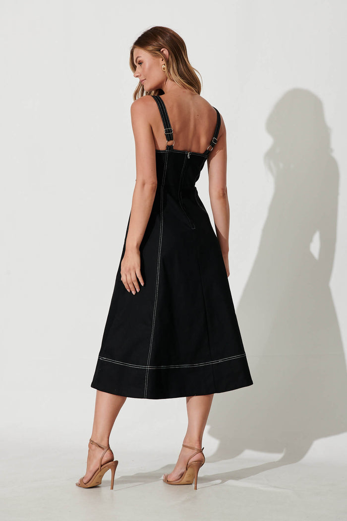Daylight Midi Sundress In Black Cotton Blend