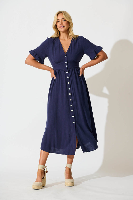 Daysia Midi Dress in Navy Linen Blend