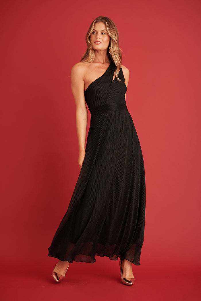 Dazzling One Shoulder Maxi Dress In Black Lurex