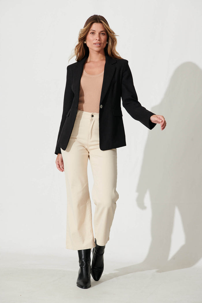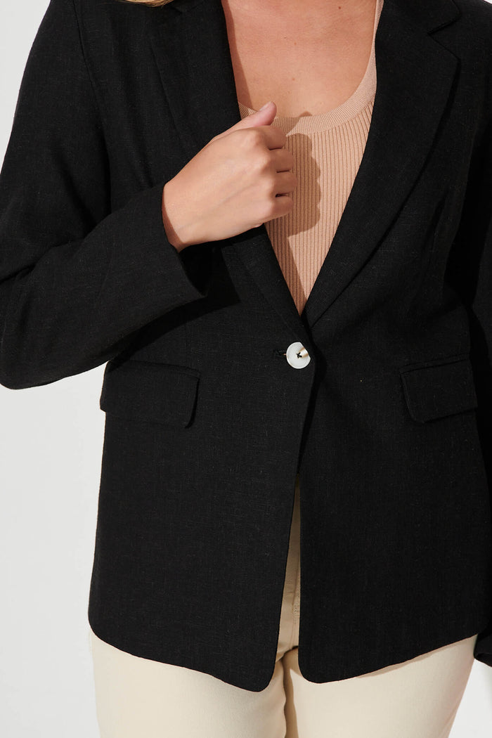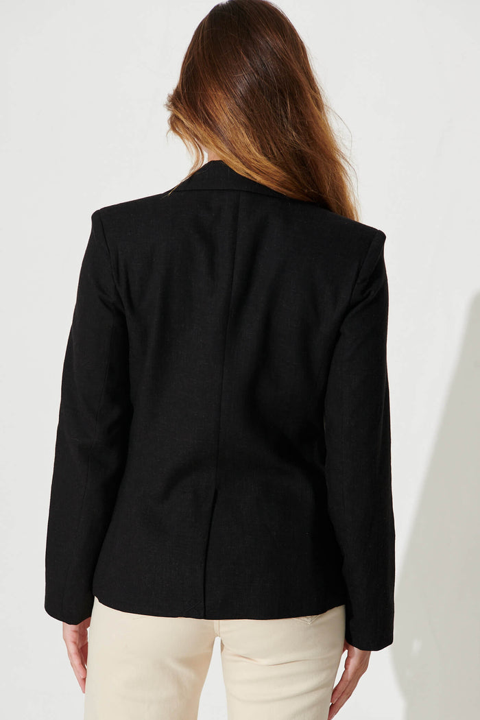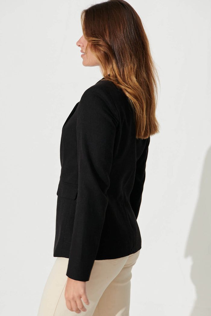 Deborah Blazer In Black Linen Blend