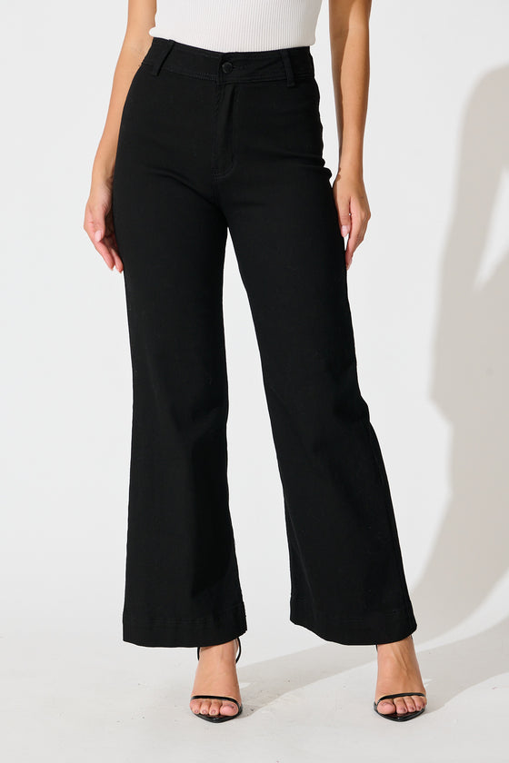 Delina High Rise Wide Leg Jean In Black Denim