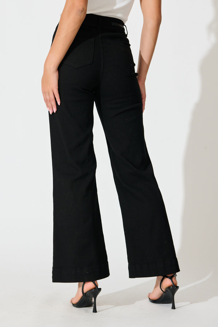 Delina High Rise Wide Leg Jean In Black Denim