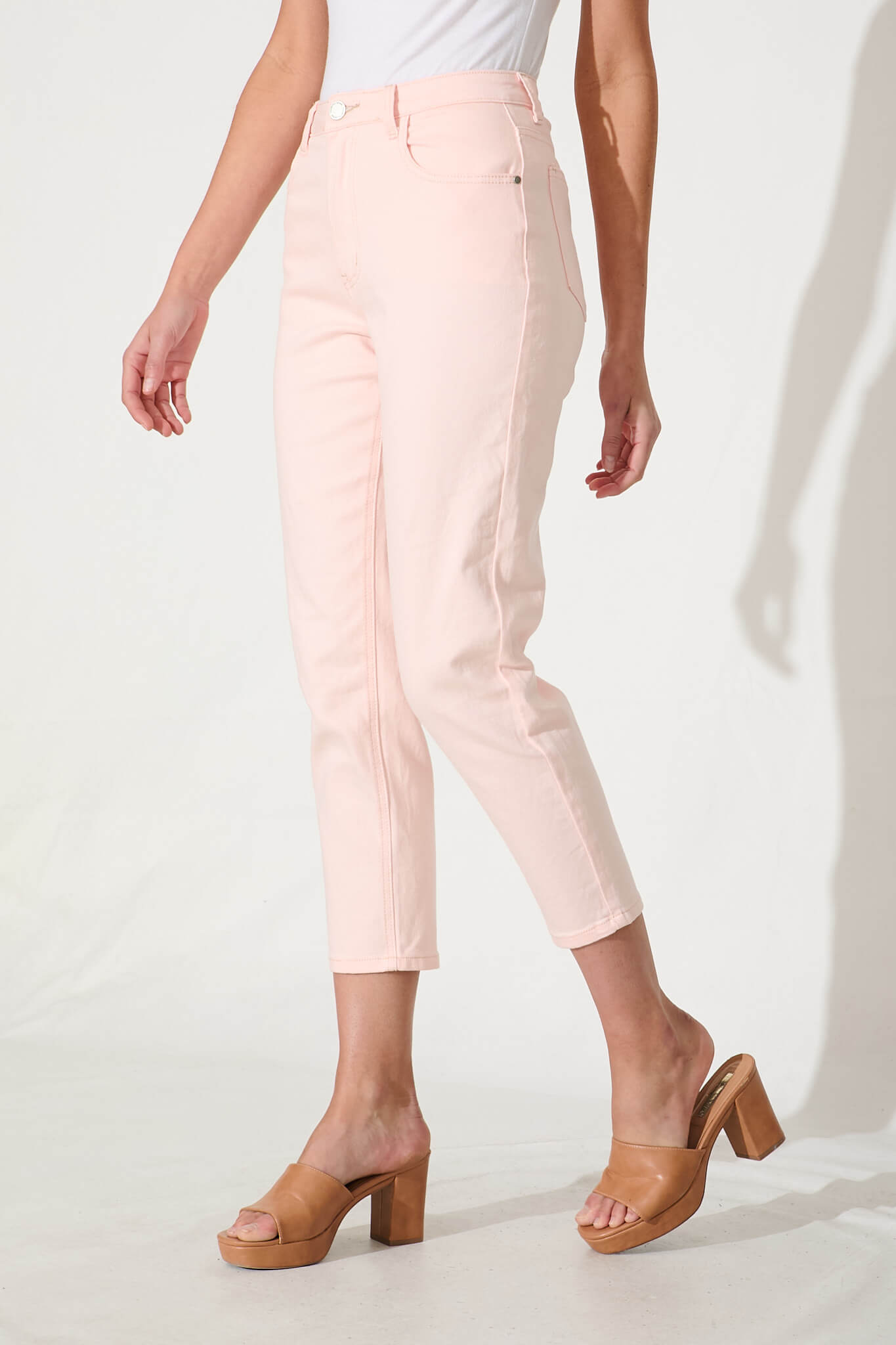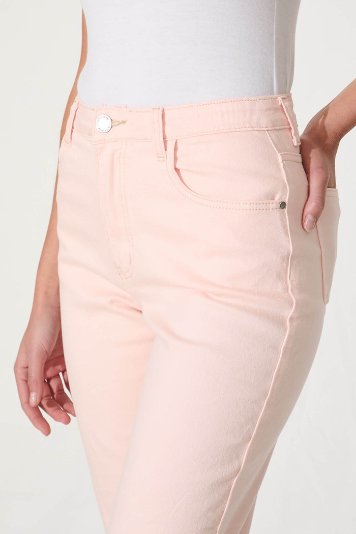 Delores High Rise Capri Straight Leg Jean In Pink Denim