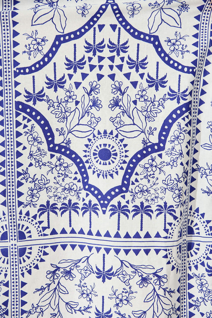 Delsanti Maxi Shirt Dress In White and Blue Cotton Linen
