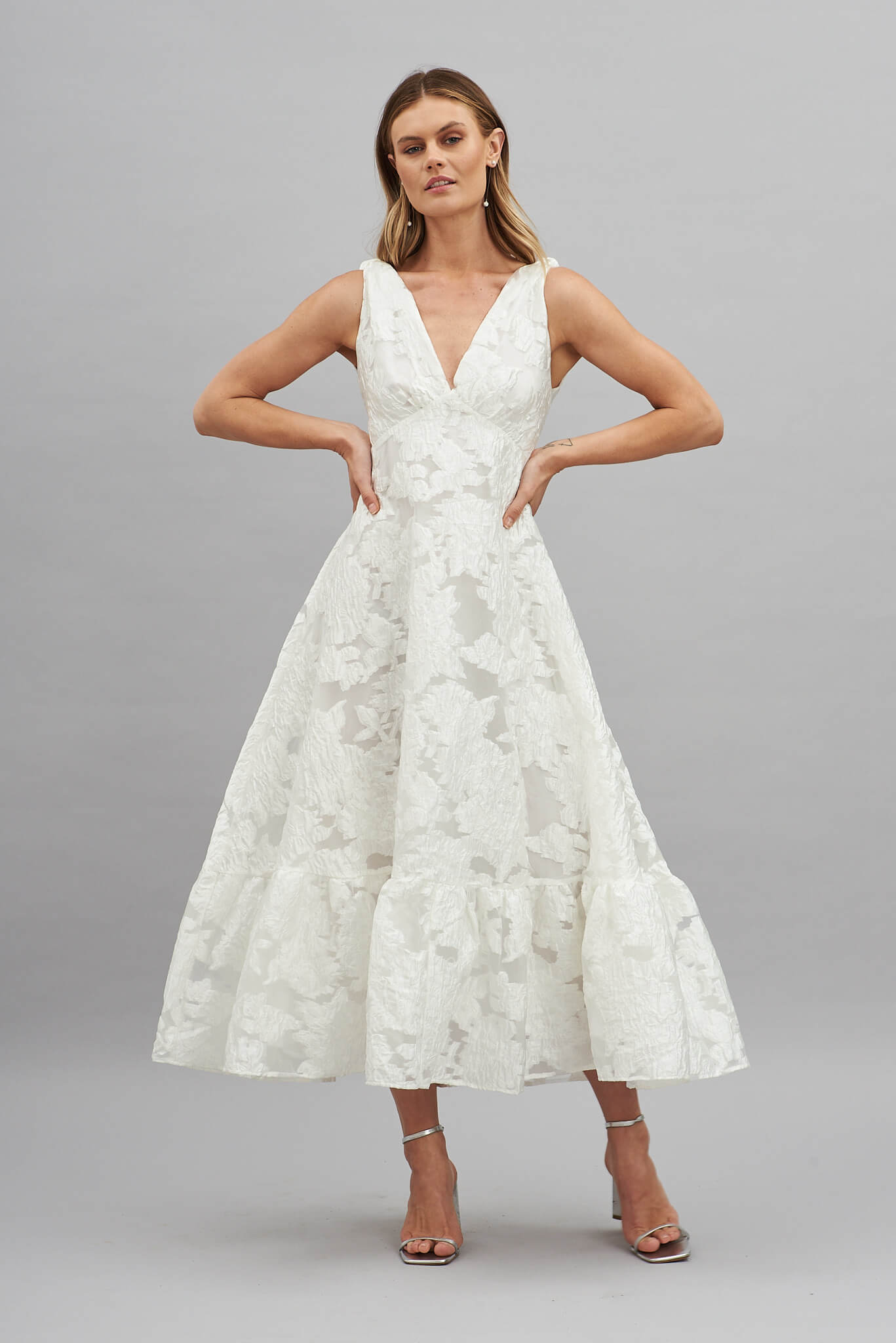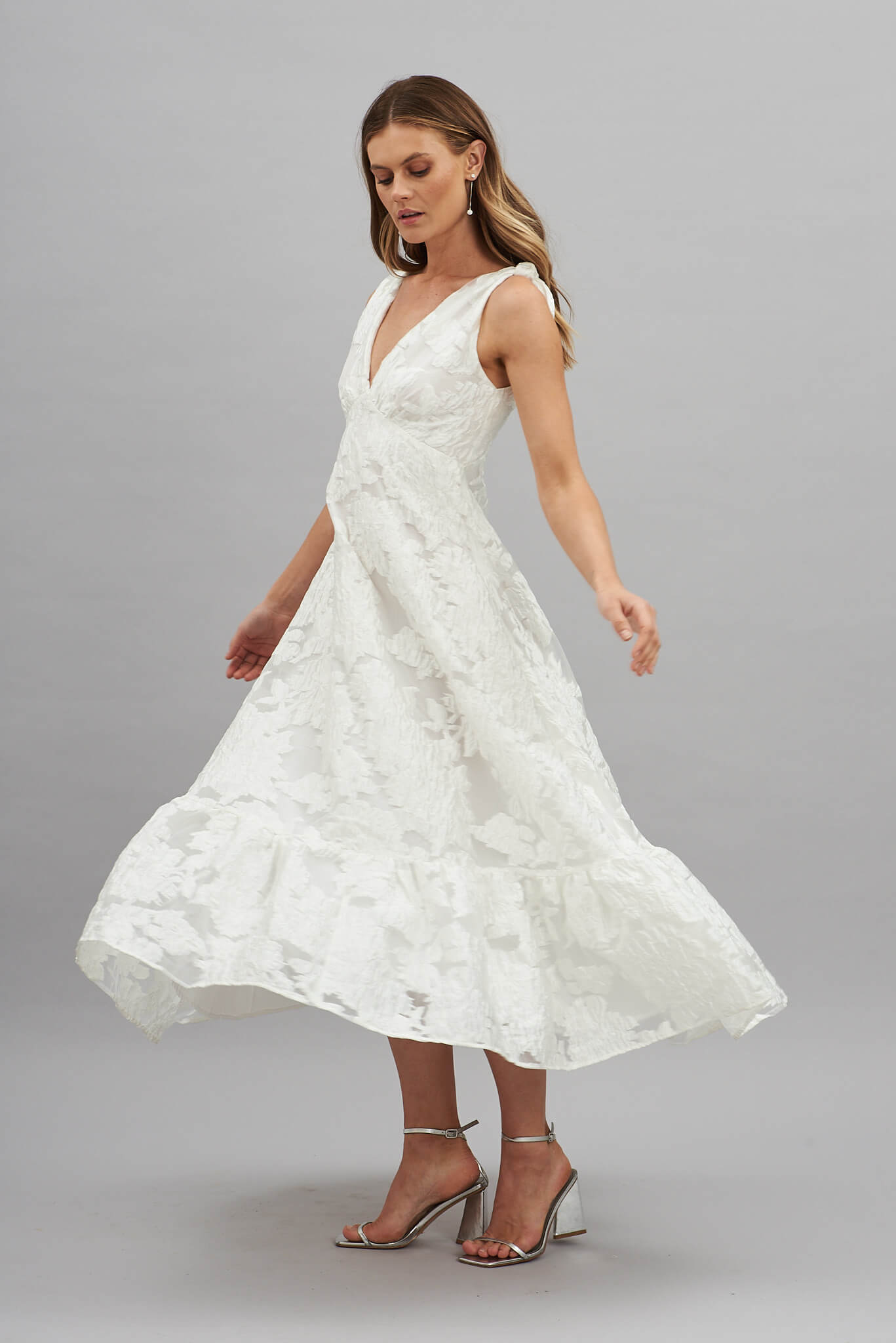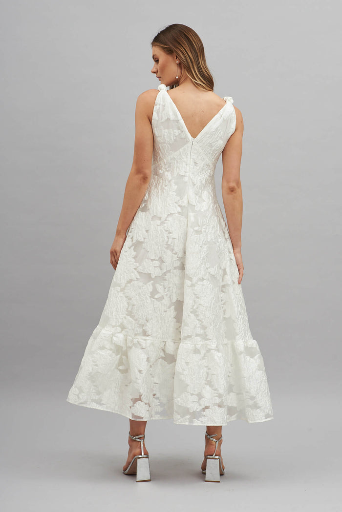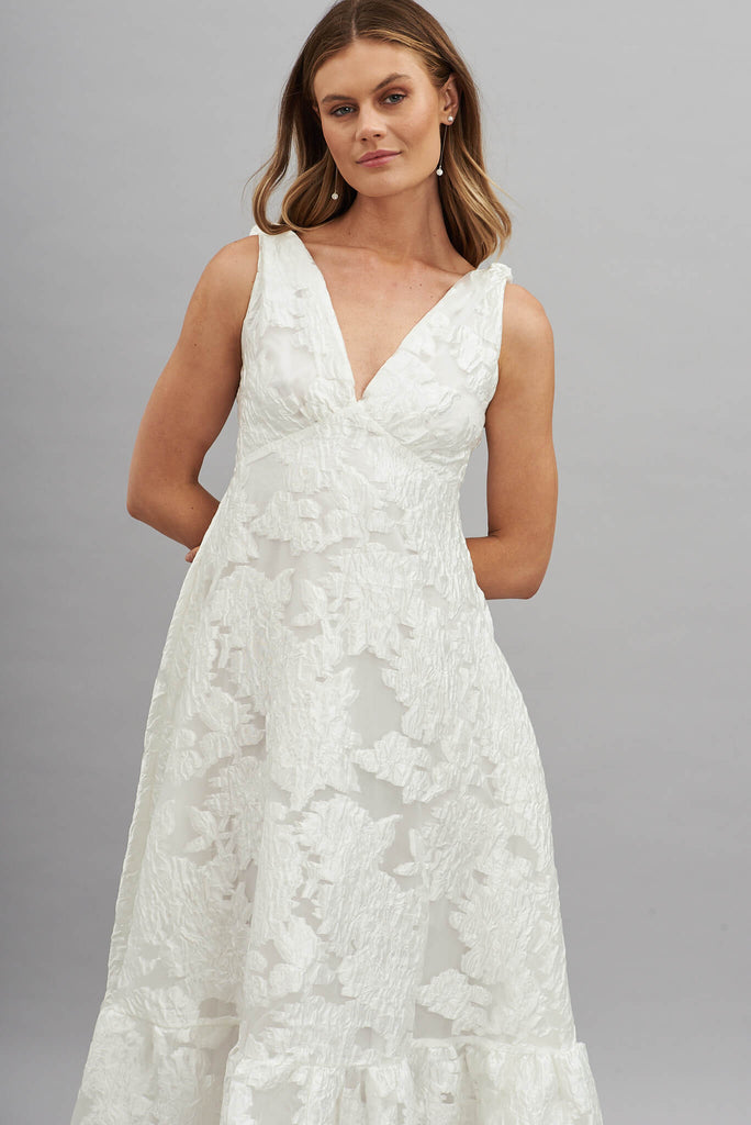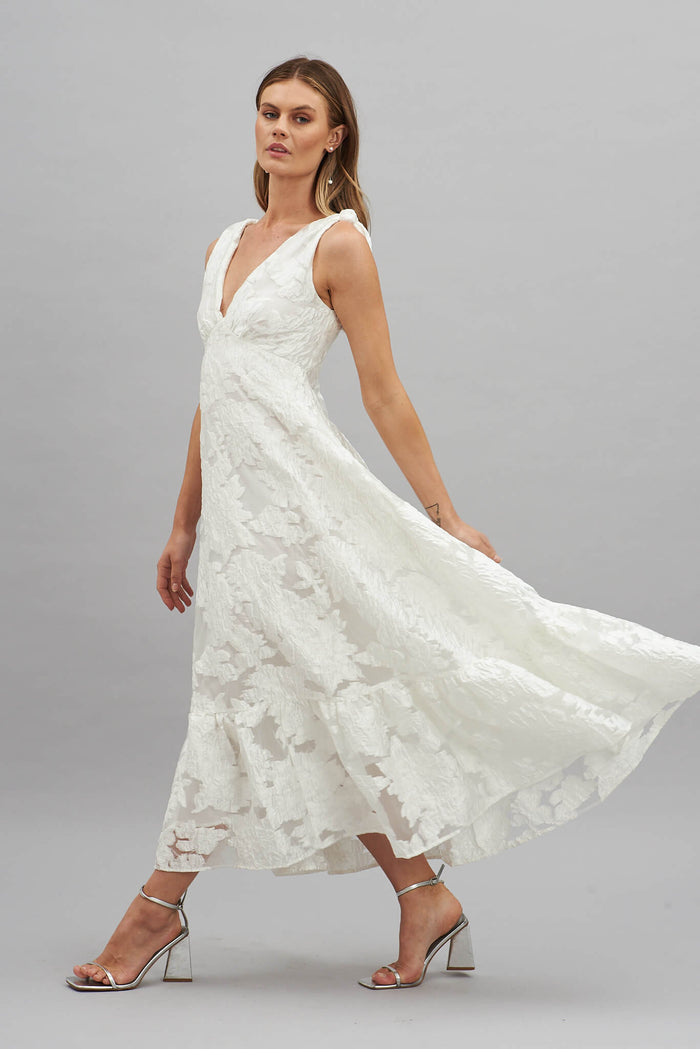 Deluxe Maxi Dress In White Floral Organza Burnout