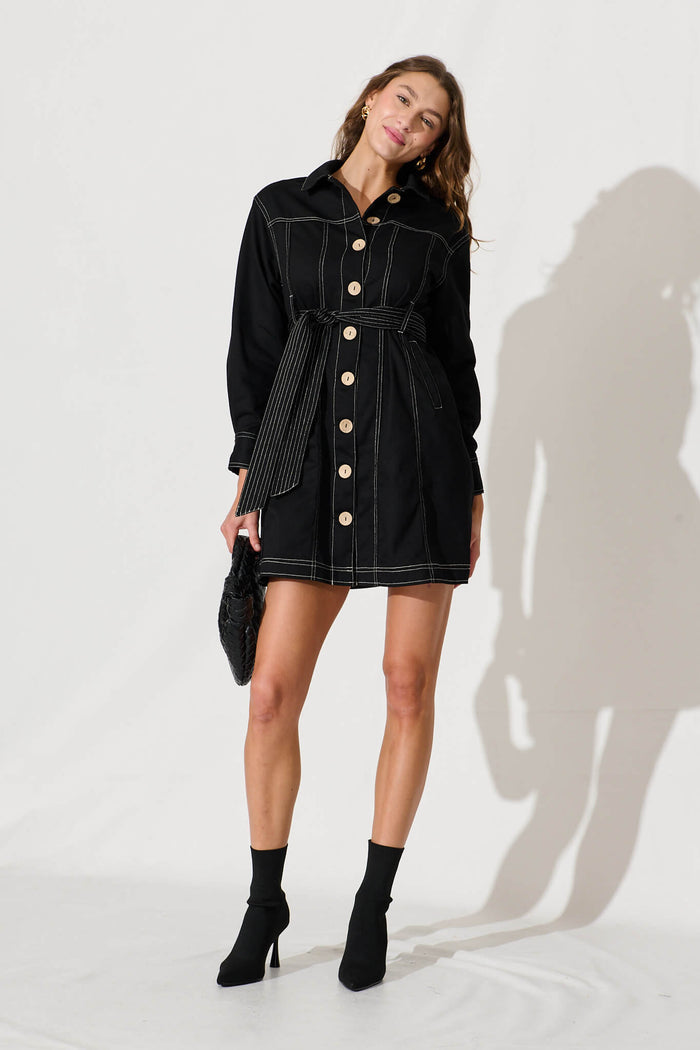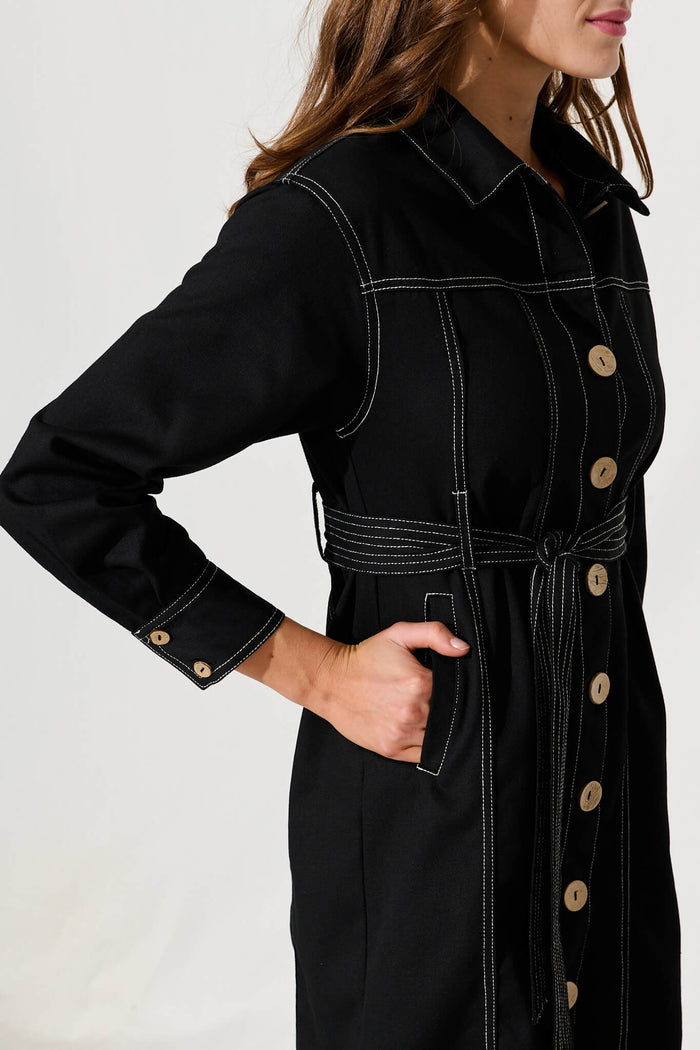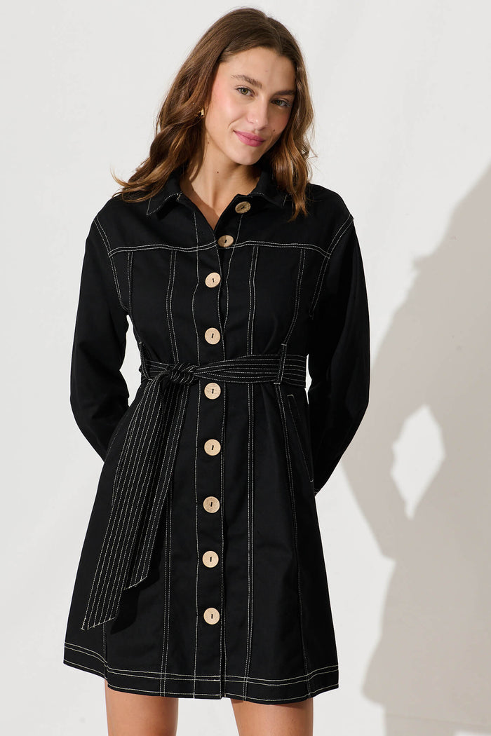 Cute Dress! Our Denise Shirt Dress is perfect for keeping you looking effortless & cool on those jam packed days. We love the faux wooden button details and separate waist tie that's both flattering and comfortable. Slip it on for work, weekend, wines and everything in between!