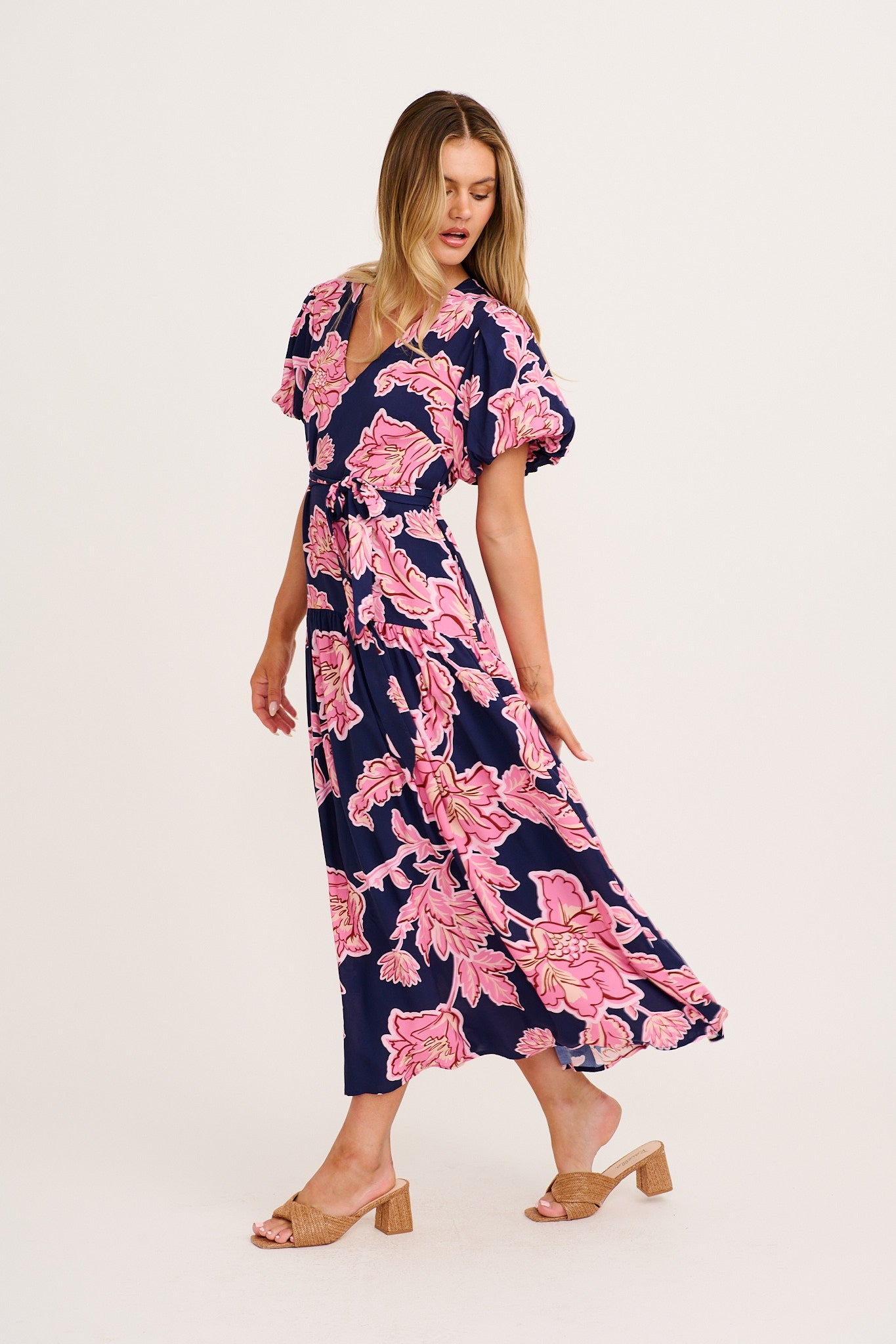 Dewy Whisper Maxi Dress in Navy with Pink Floral