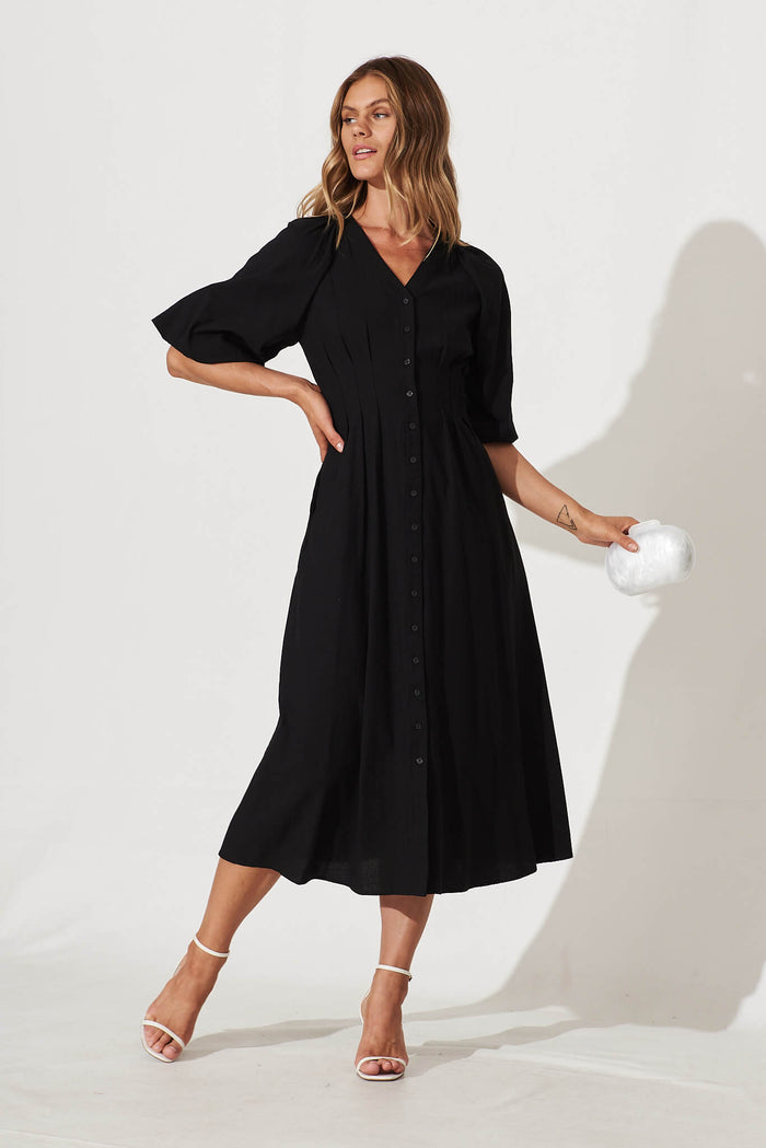 Our Diane Midi Dress is a major must have! It's both stylish and flattering, and can easily be worn to a range of events and occasions. For cocktails with the girls, wear with a pair of strappy heels, statement earrings, and a cute clutch!