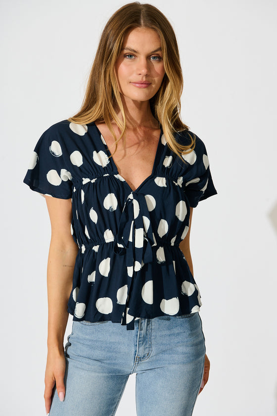 Dotted Rhythm Top in Navy with White Spot