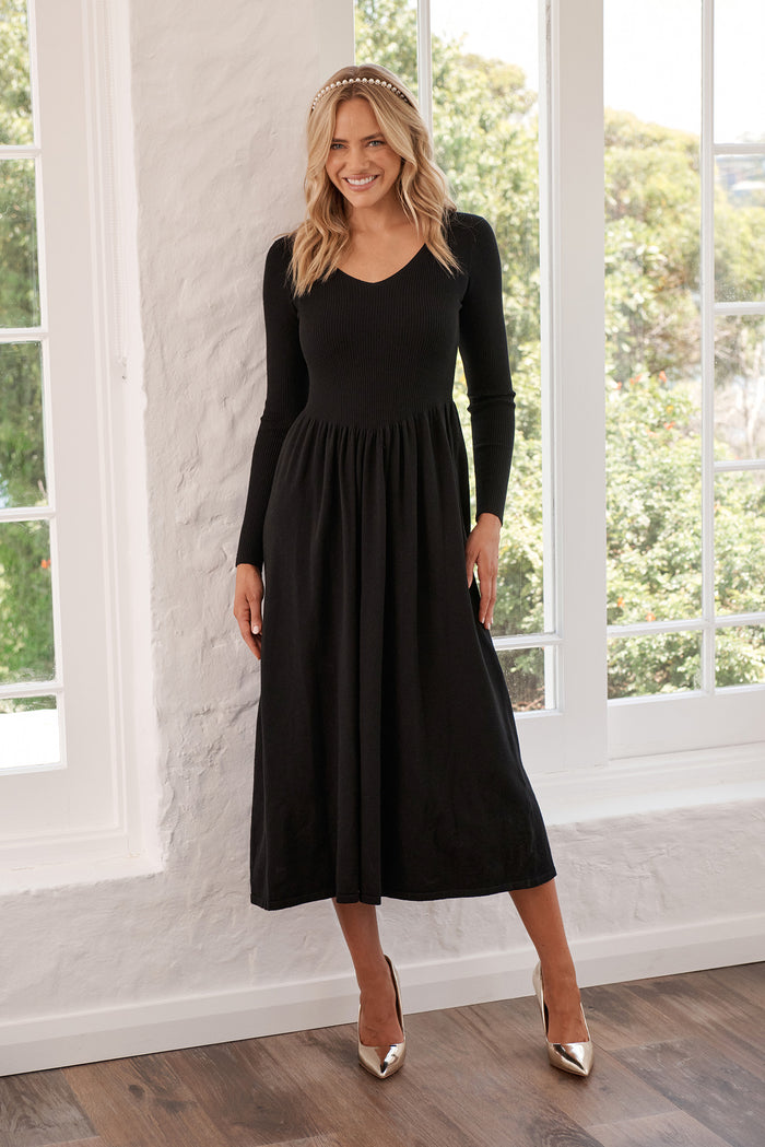 Made from a ribbed texture knit, our Dove Midi Knit Dress is perfect for transeasonal days. Featuring a V-neckline and pull on style for convenience, team with your go-to strappy heels for a chic and clean look.