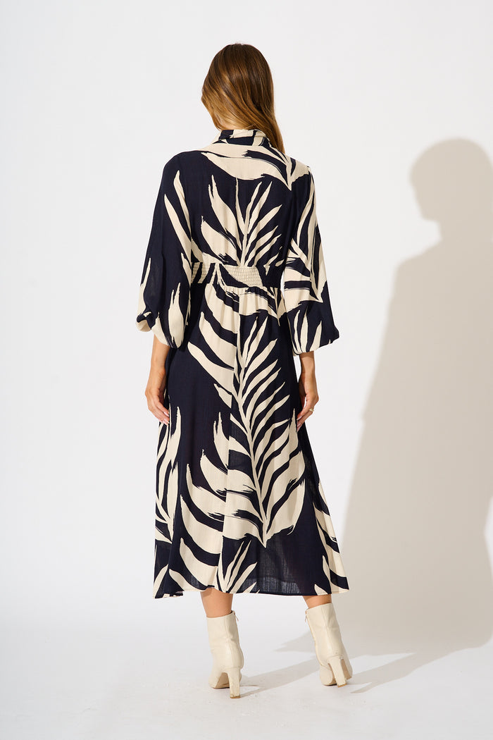 Dreamscape Midi Shirt Dress in Navy and Cream Print