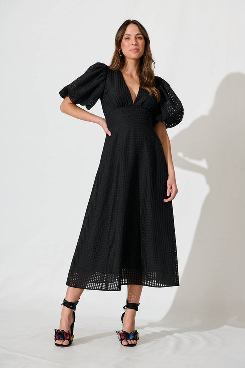 Elevate the game in our Duchess Maxi Dress this season. Made from a semi-sheer fabrication, this dress sports nothing but elegance and style. Team with your strappy heels for a timeless look.