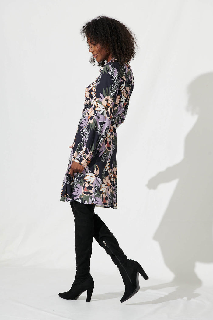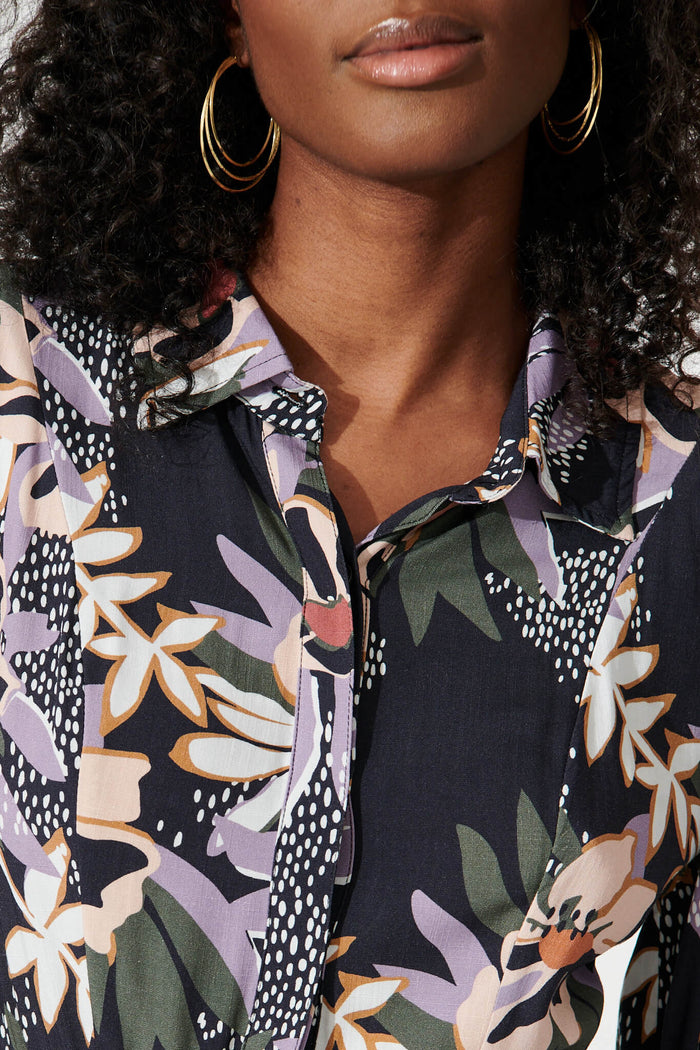 Eilish Shirt Dress In Black Multi Floral
