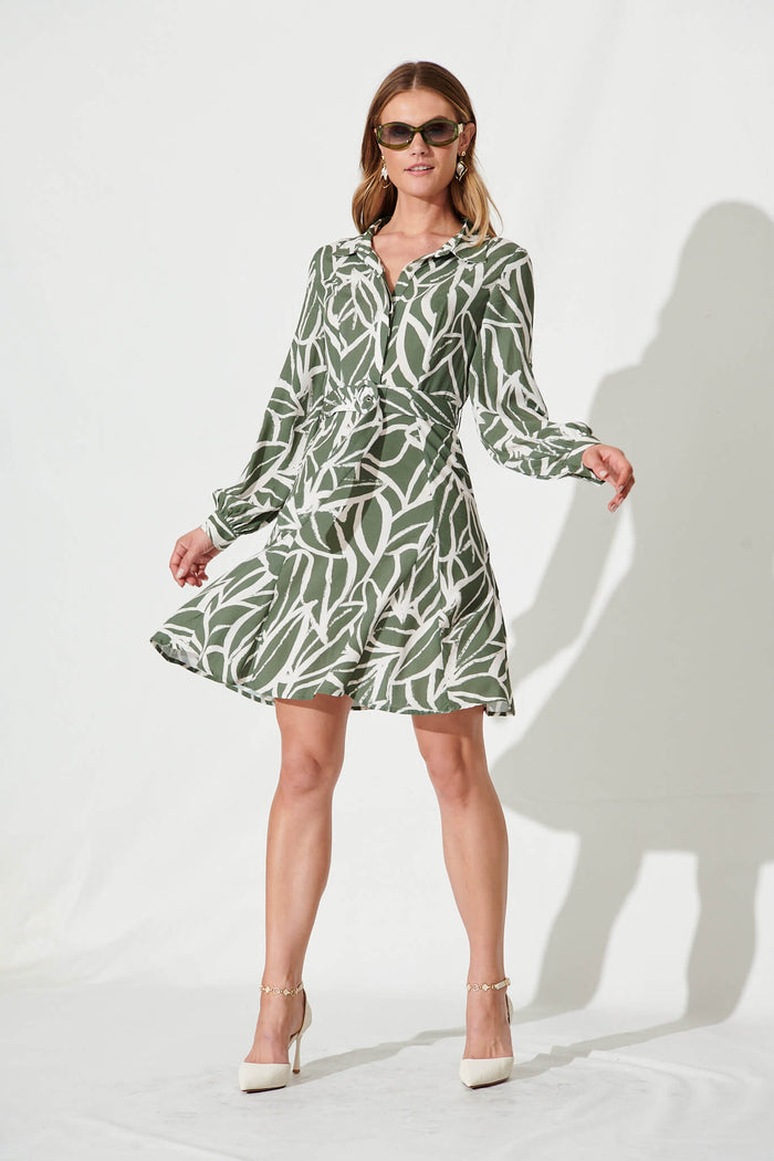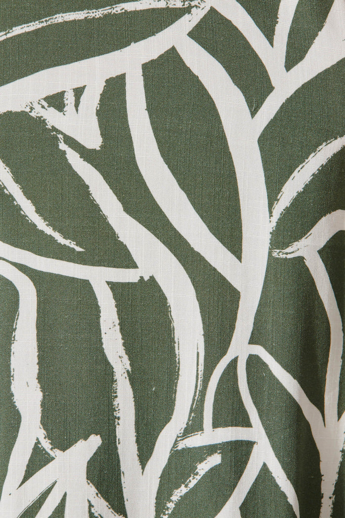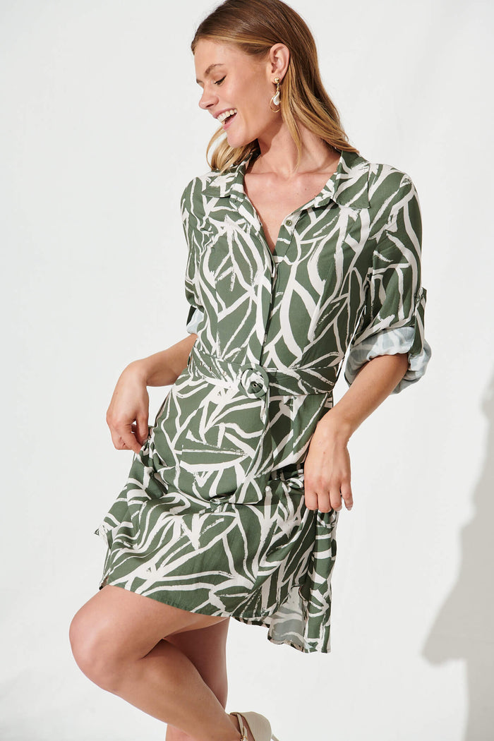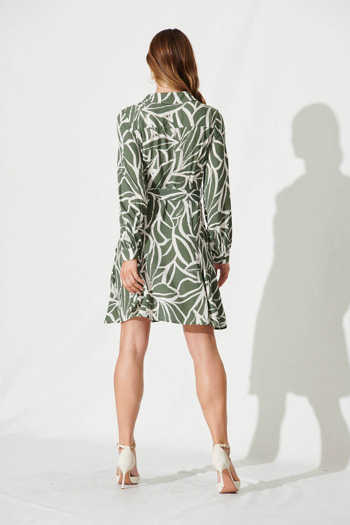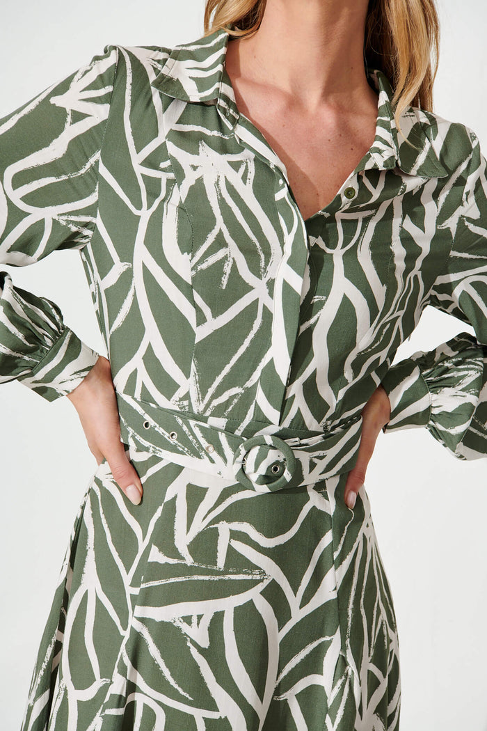 Eilish Shirt Dress In Khaki With White Leaf Print
