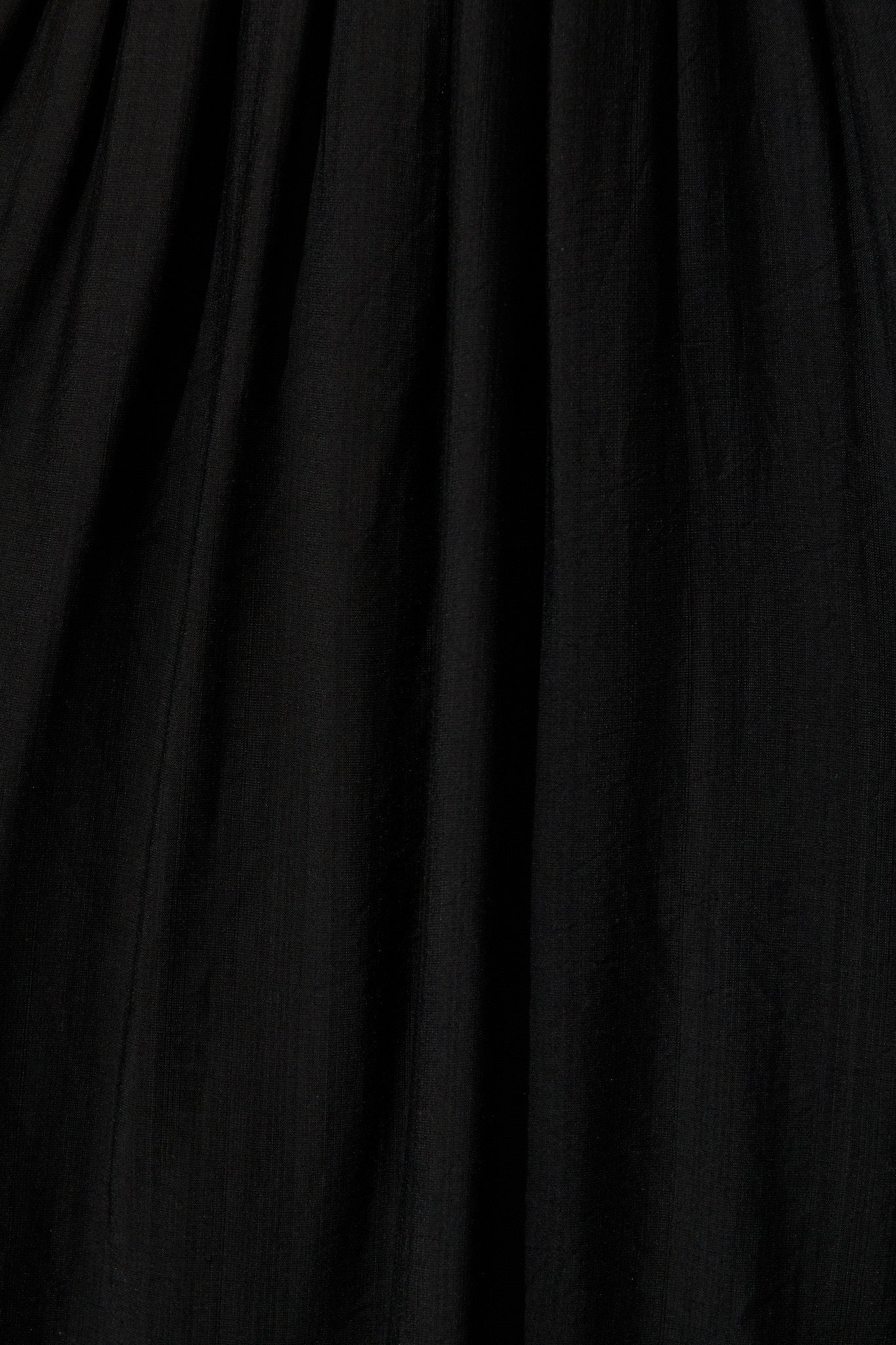 The flattering A-line silhouette features a softly structured box pleat waist to define your shape, balanced with a round neckline and grown-on short sleeves for an elegant touch. Centre back shirring ensures a flexible fit that moves with you, while the invisible zip closure keeps the finish sleek and streamlined.
