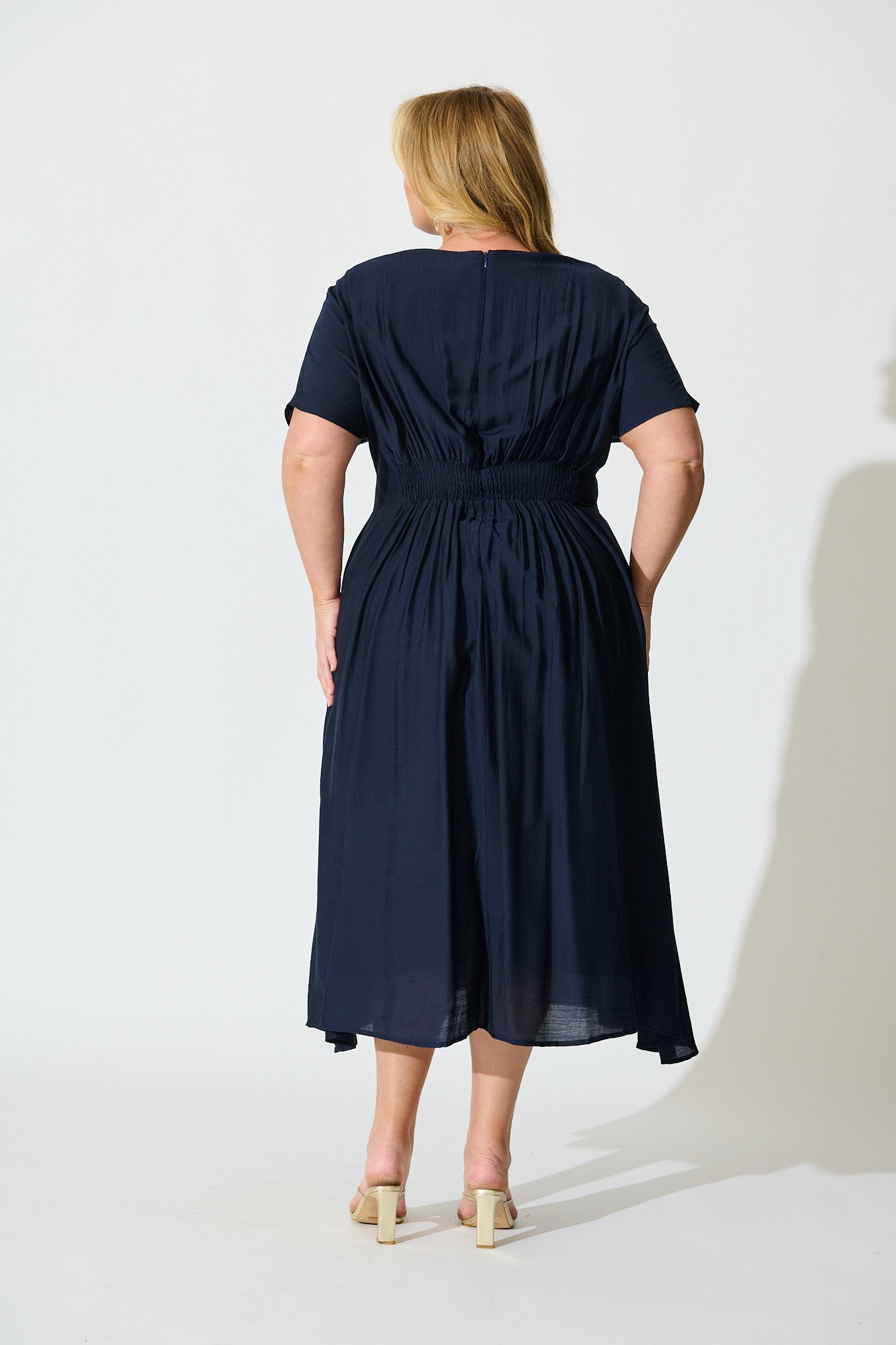 Falling to a full maxi length, this dress moves beautifully with every step. Style it with heeled sandals and delicate jewellery for formal events, or add statement earrings and a clutch for a more glamorous take. The deep navy hue is endlessly versatile, making this a go-to piece for any special occasion in your calendar.