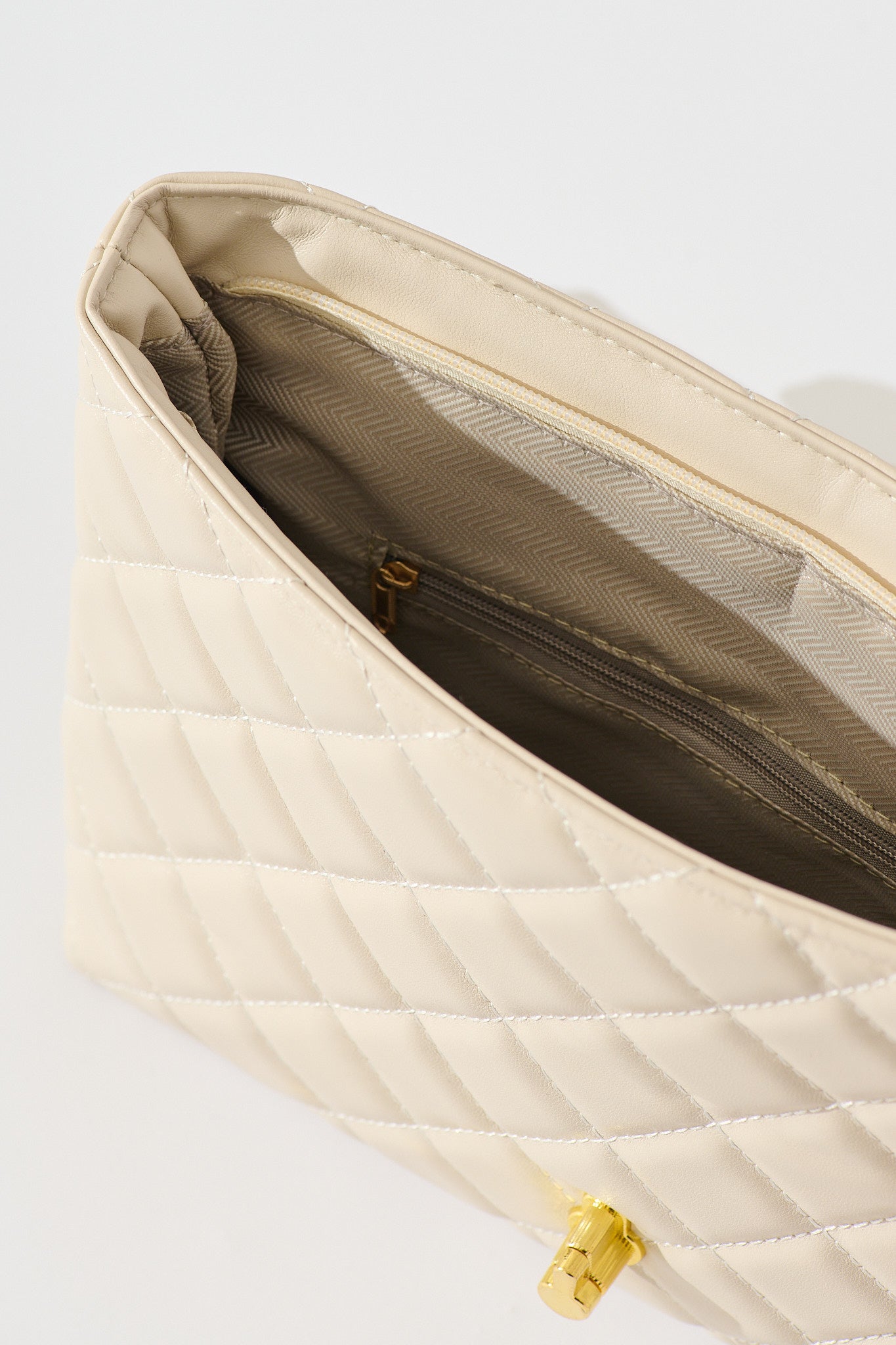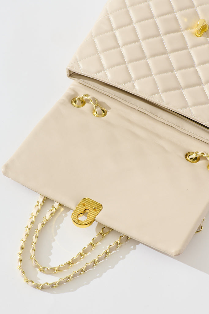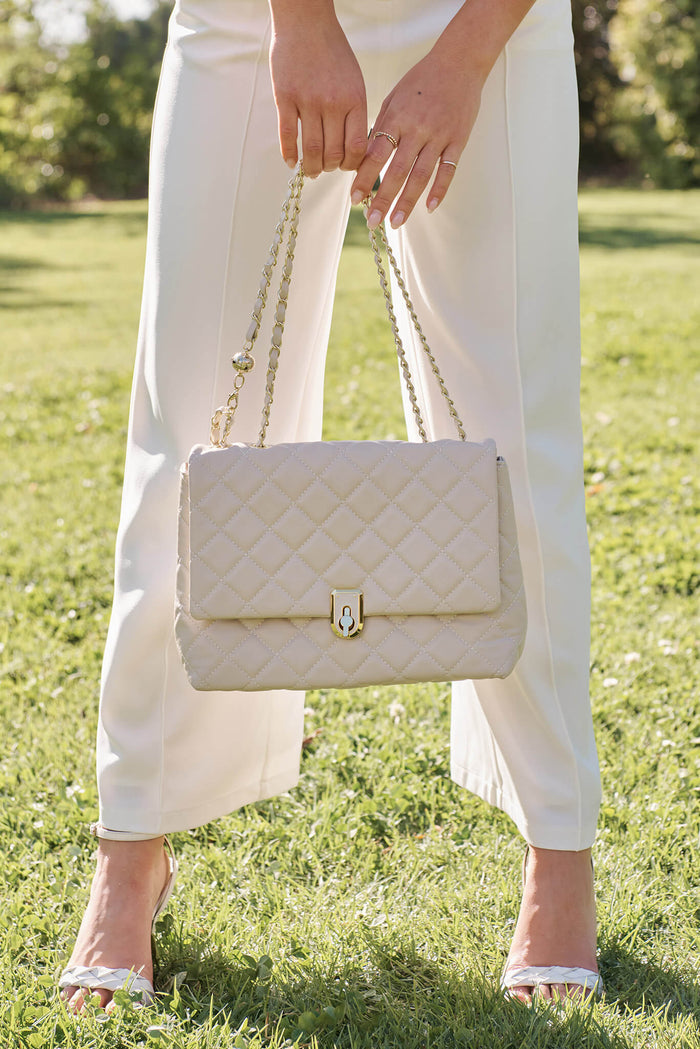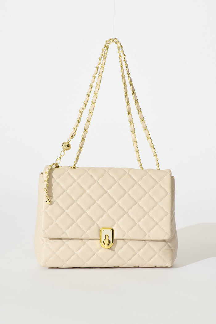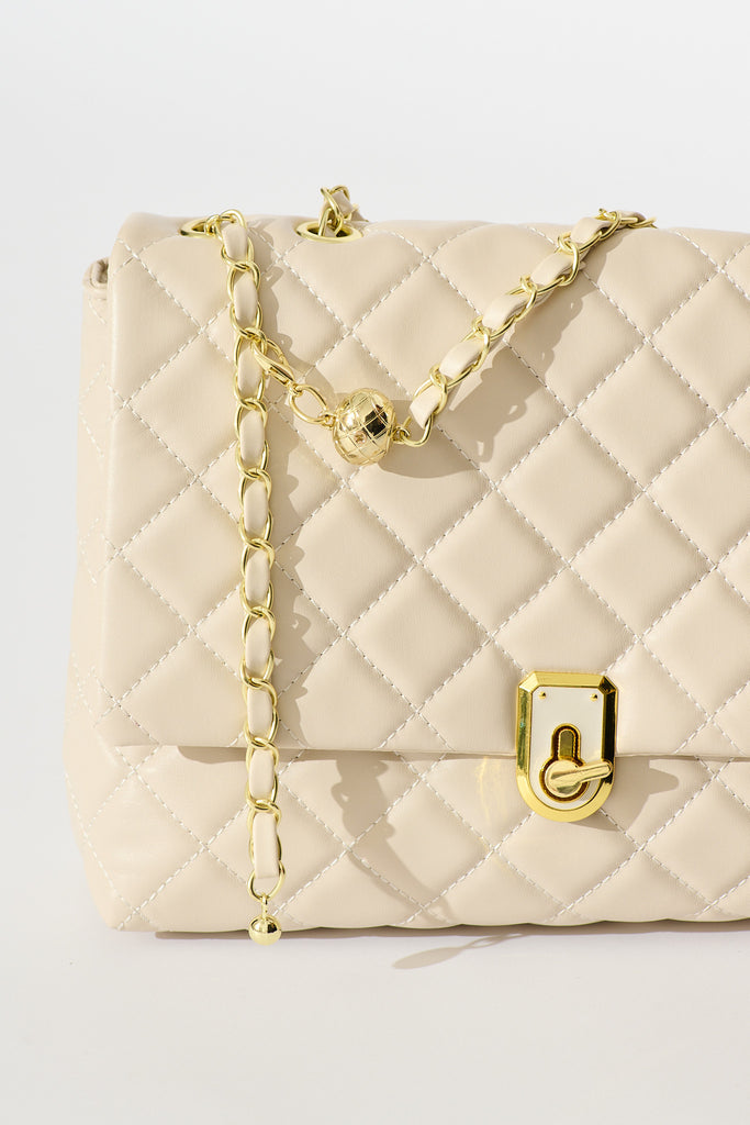 Eliza Quilted Crossbody Bag In Beige