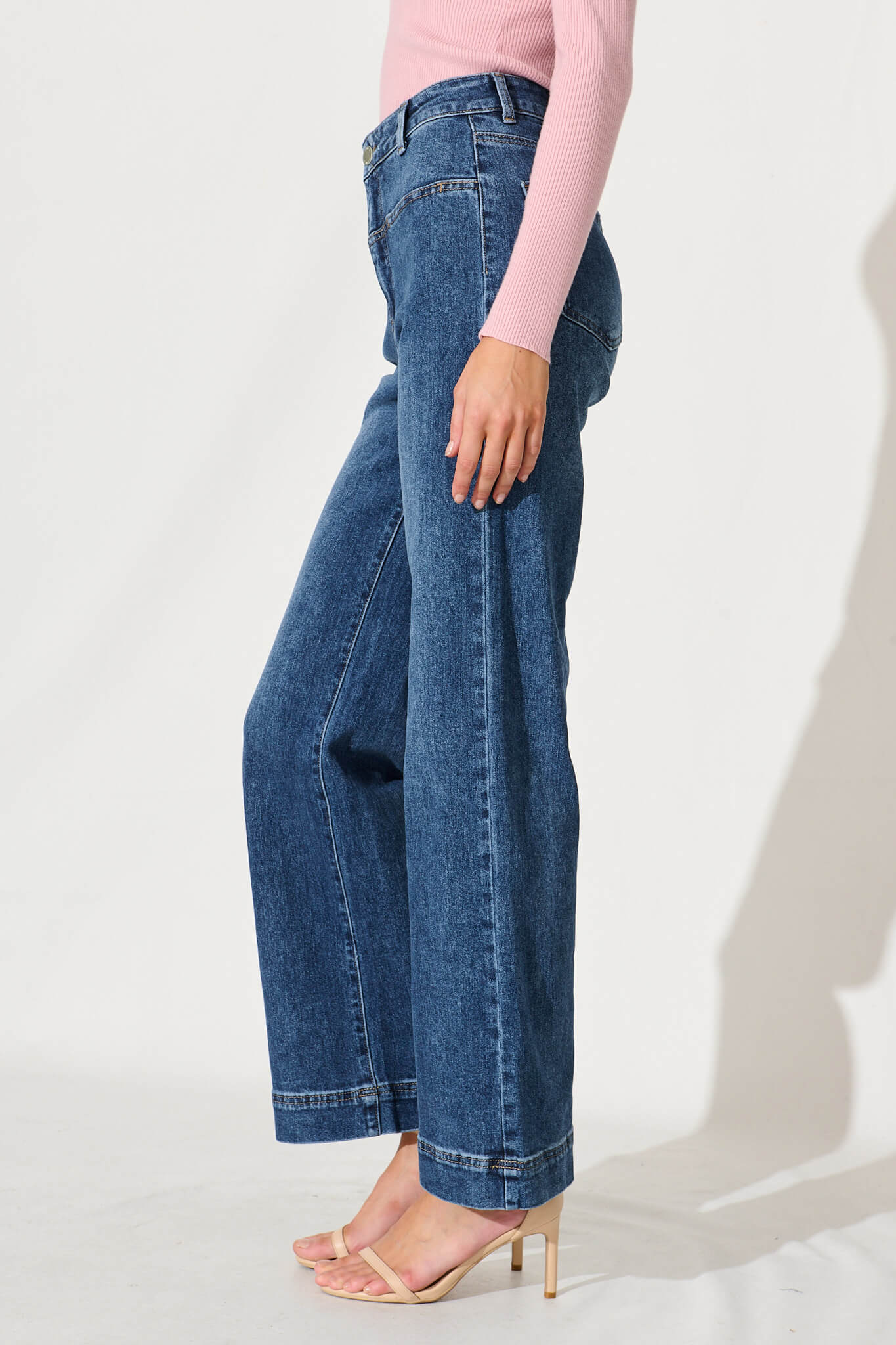 Ella High Rise Relaxed Leg Jean In Mid Blue Denim