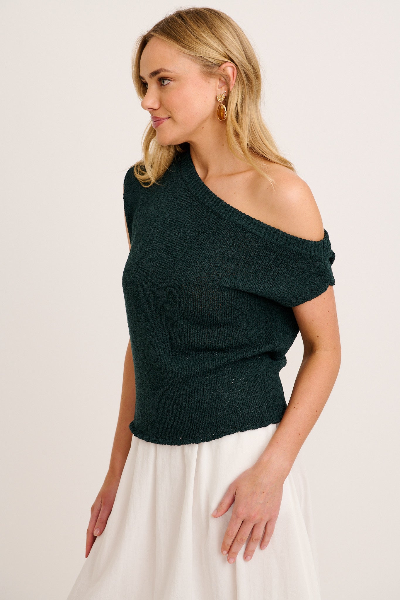 Made from a midweight cotton blend knit, our Elsie Knit Top is perfect for all year round. Featuring an off-the-shoulder design, team with your everyday denim for a fun look.