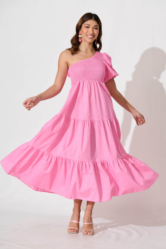 Elyria Maxi Dress In Pink Cotton Linen Blend
